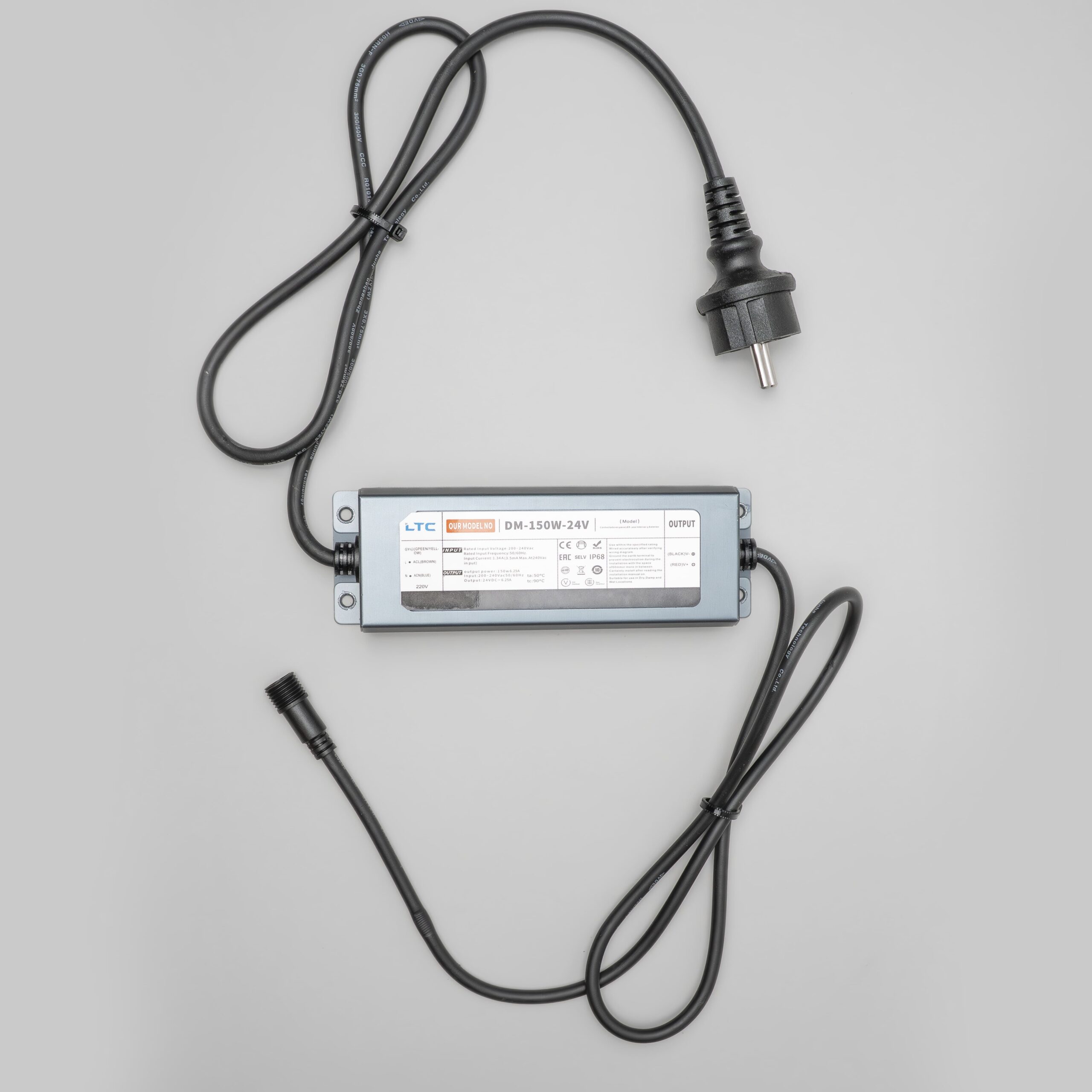 Блок Питания Электронный 150W для Нитей 24В, до 2000 LED, Провод Черный Каучук, IP65 LTC DM-150F-24V в Альметьевске