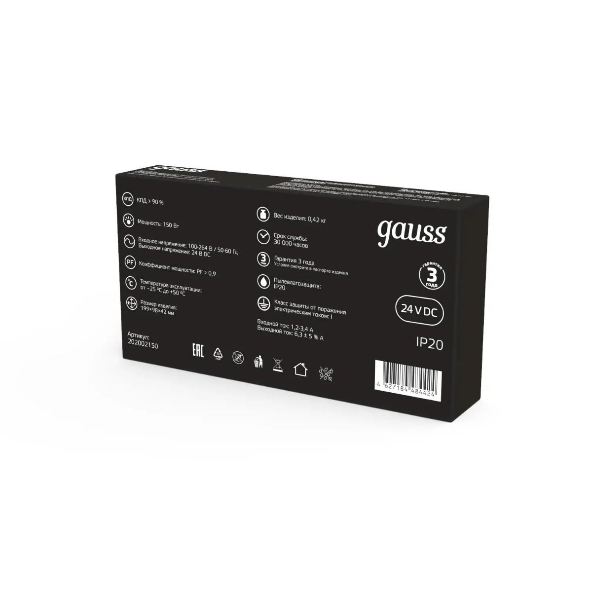 Купить "Блок питания Gauss 150W 24V IP20 202002150"