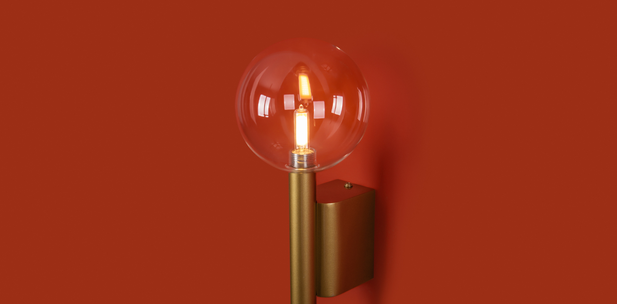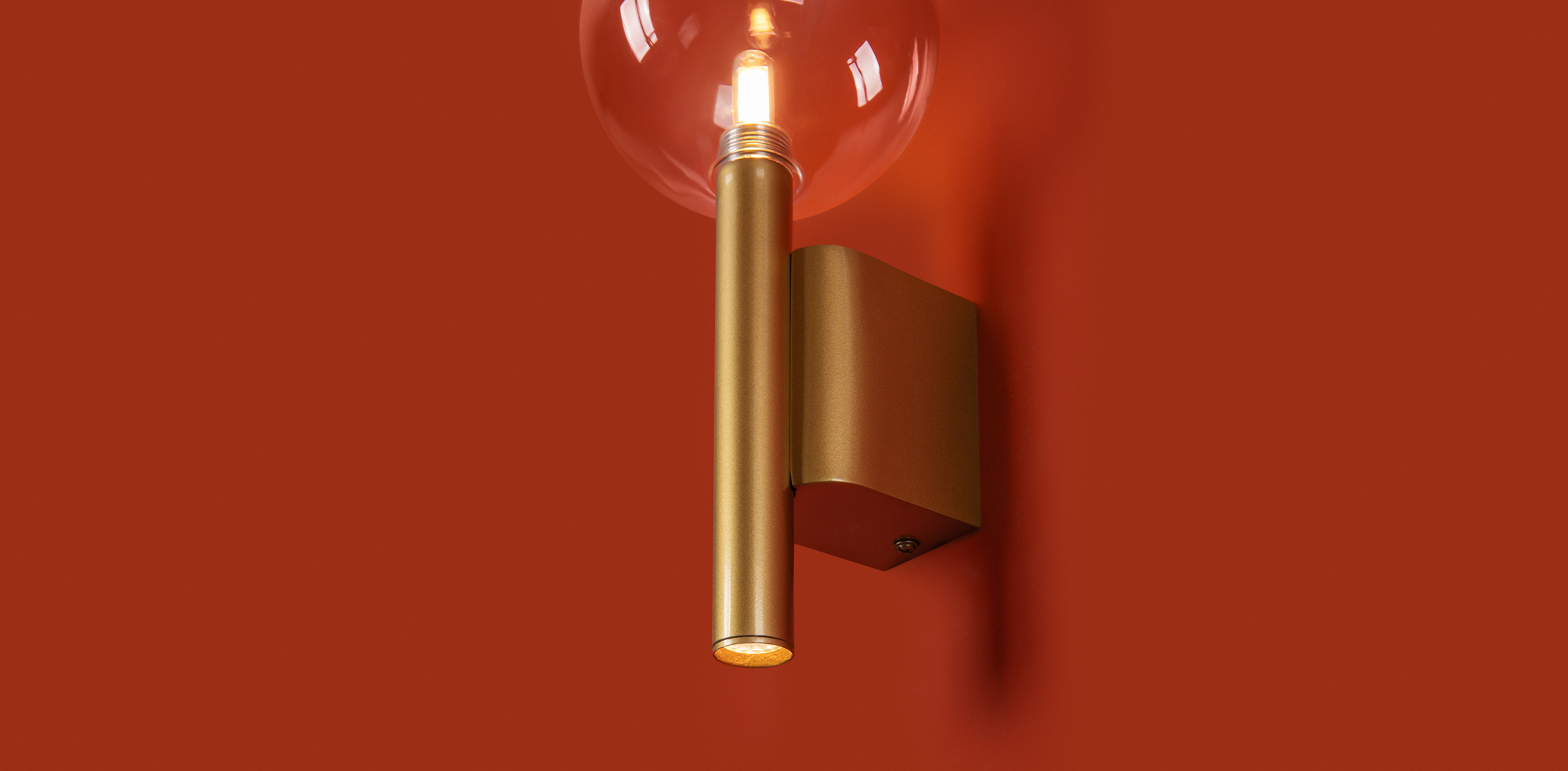 Арматура - металл в цвете матовое золото. Светильники с прозрачным дутым стеклом. LED источник света (2700K). Круглые стеклянные абажуры создают тёплый свет. У настенного светильника 2 источника света.