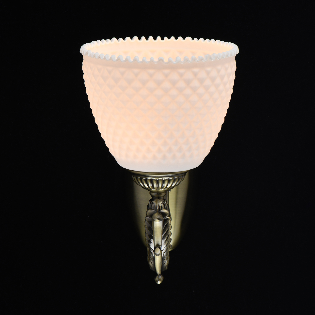 уникальный плафон, выполненный из фактурного стекла белого цвета, мягко рассеивает свет и наполняет пространство уютом;