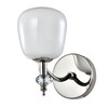 Металлическое основание бра гальванизировано в цвет хрома. Стеклянный плафон вытянутой формы окрашен в белый цвет изнутри. Настенное бра декорировано прозрачным массивом хрусталя. Актуальный дизайн настенного бра подойдет для гостиной, спальни и кухни.