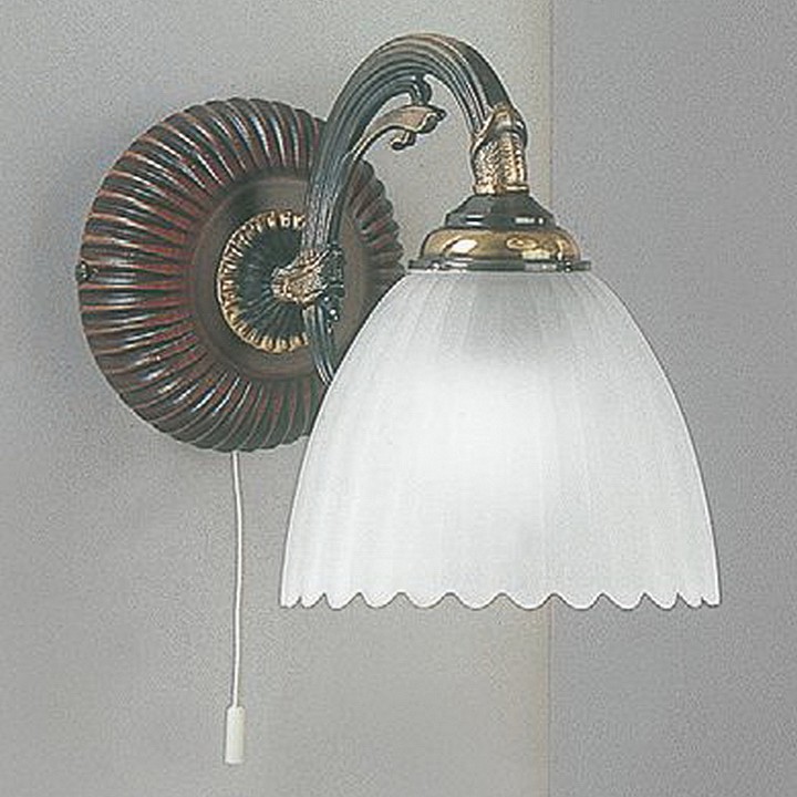 Бра Reccagni Angelo A 3510/1 Итальянского производсва – уникальное сочетание высокого качества и удивительных фактур. Этот светильник Классического стиля хорошо подойдет Для спальни и придаст помещению мягкий и приятный свет. Плафоны белые из стекла. Арматура бронза из металла. Кол-во ламп - 1шт. Общая мощность 60W