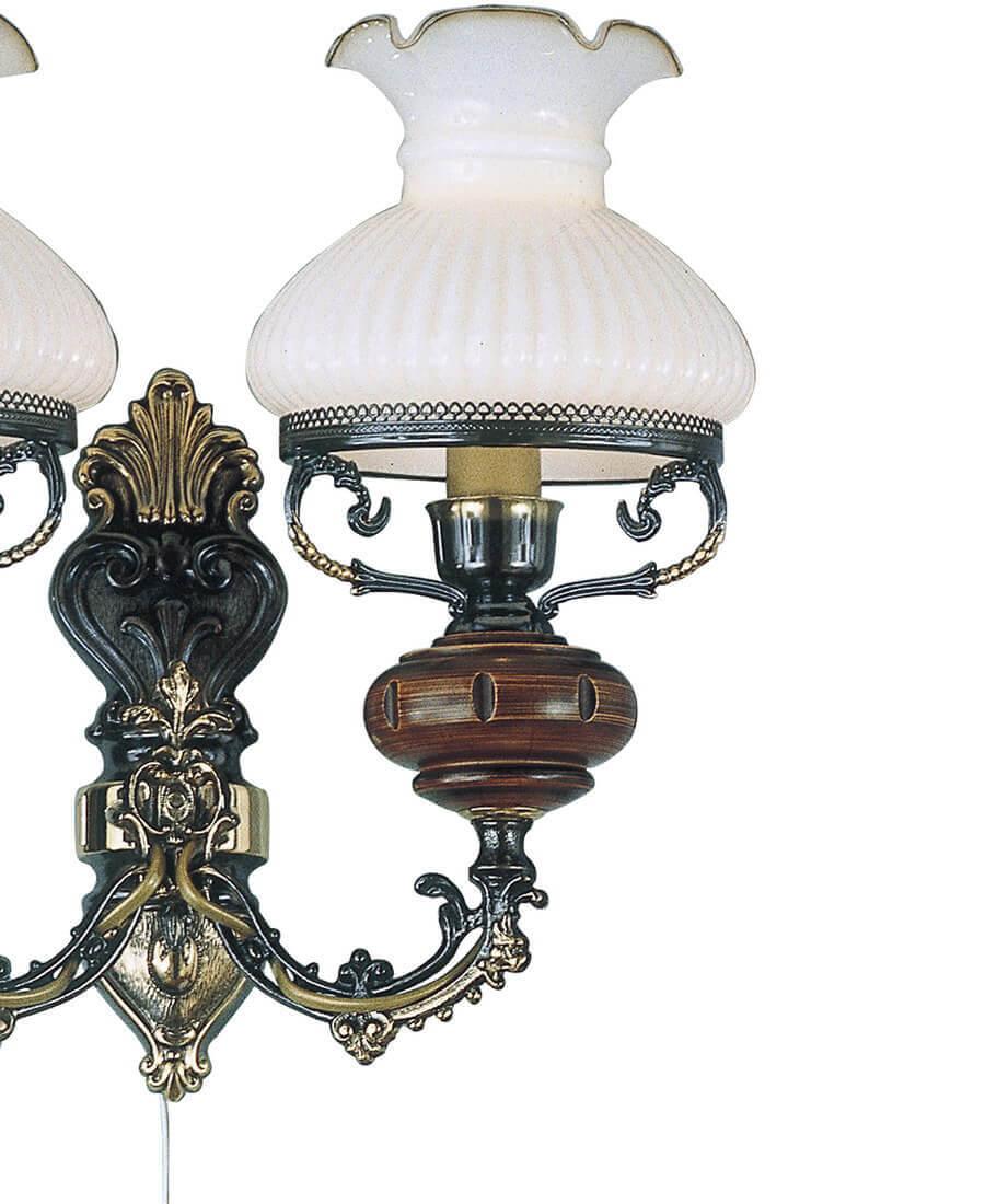 Бра Reccagni Angelo A 620/2 Итальянского производсва – уникальное сочетание высокого качества и удивительных фактур. Этот светильник Классического стиля хорошо подойдет Для кафе, ресторанов и придаст помещению мягкий и приятный свет. Плафоны белые из стекла. Арматура бронза из металла. Кол-во ламп - 2шт. Общая мощность 120W