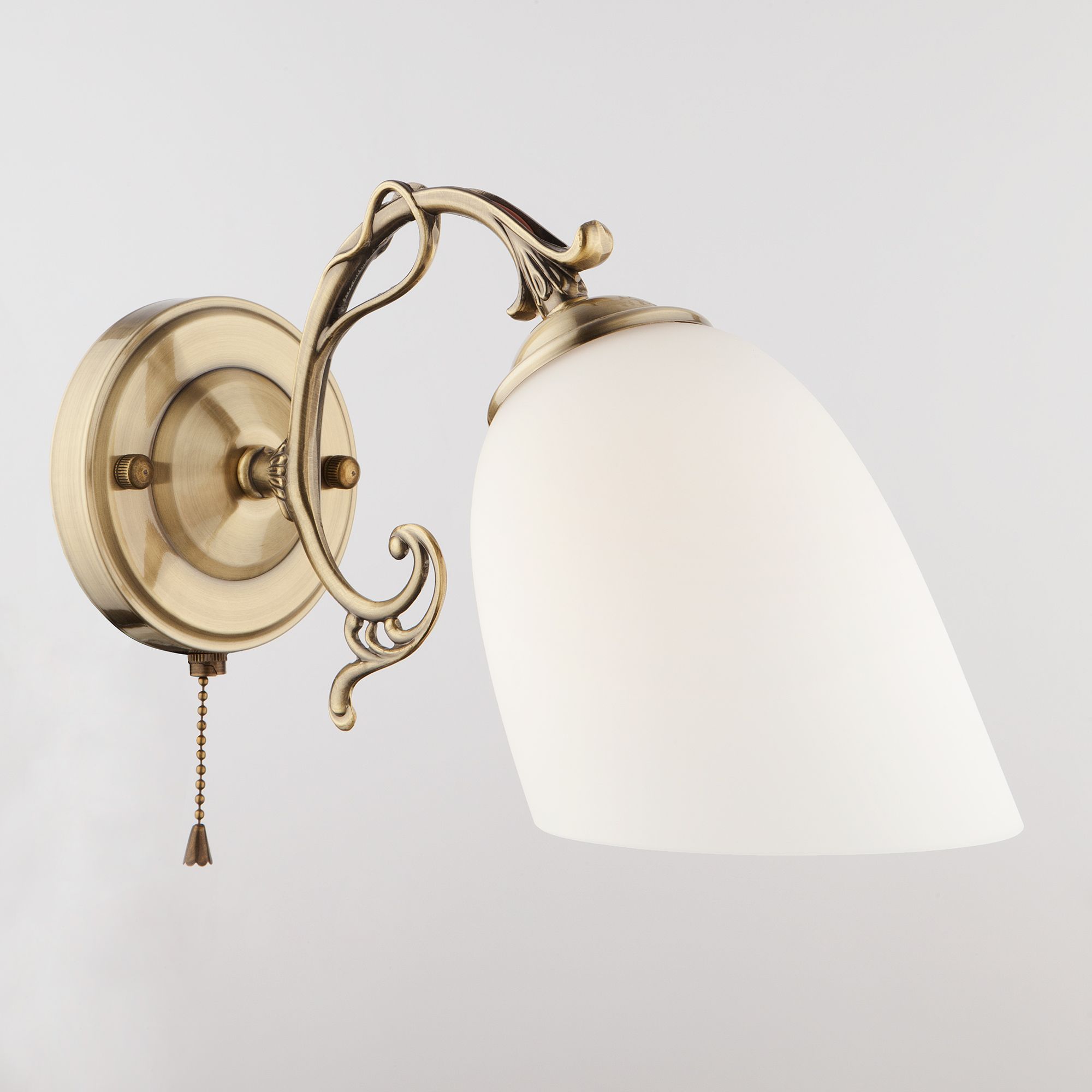 Бра классическое с плафоном 22010/1 античная бронза создаст качественное дополнительное освещение и станет эффектным дополнением к основному источнику света. Благодаря белому стеклянному плафону бра создает мягкое равномерное свечение. В качестве источника света используются сменные лампы типа "Свеча" или "Шар" с цоколем E27.
