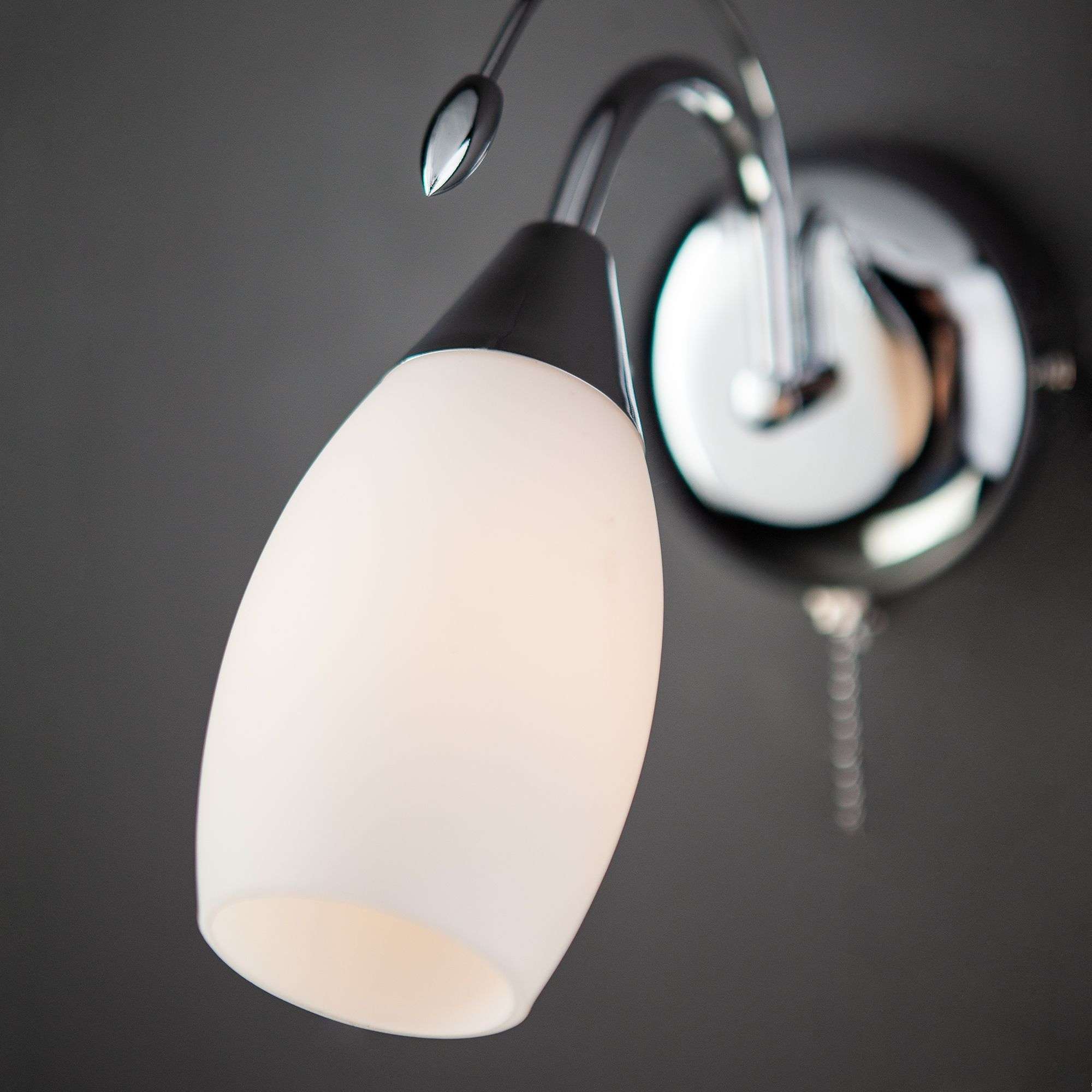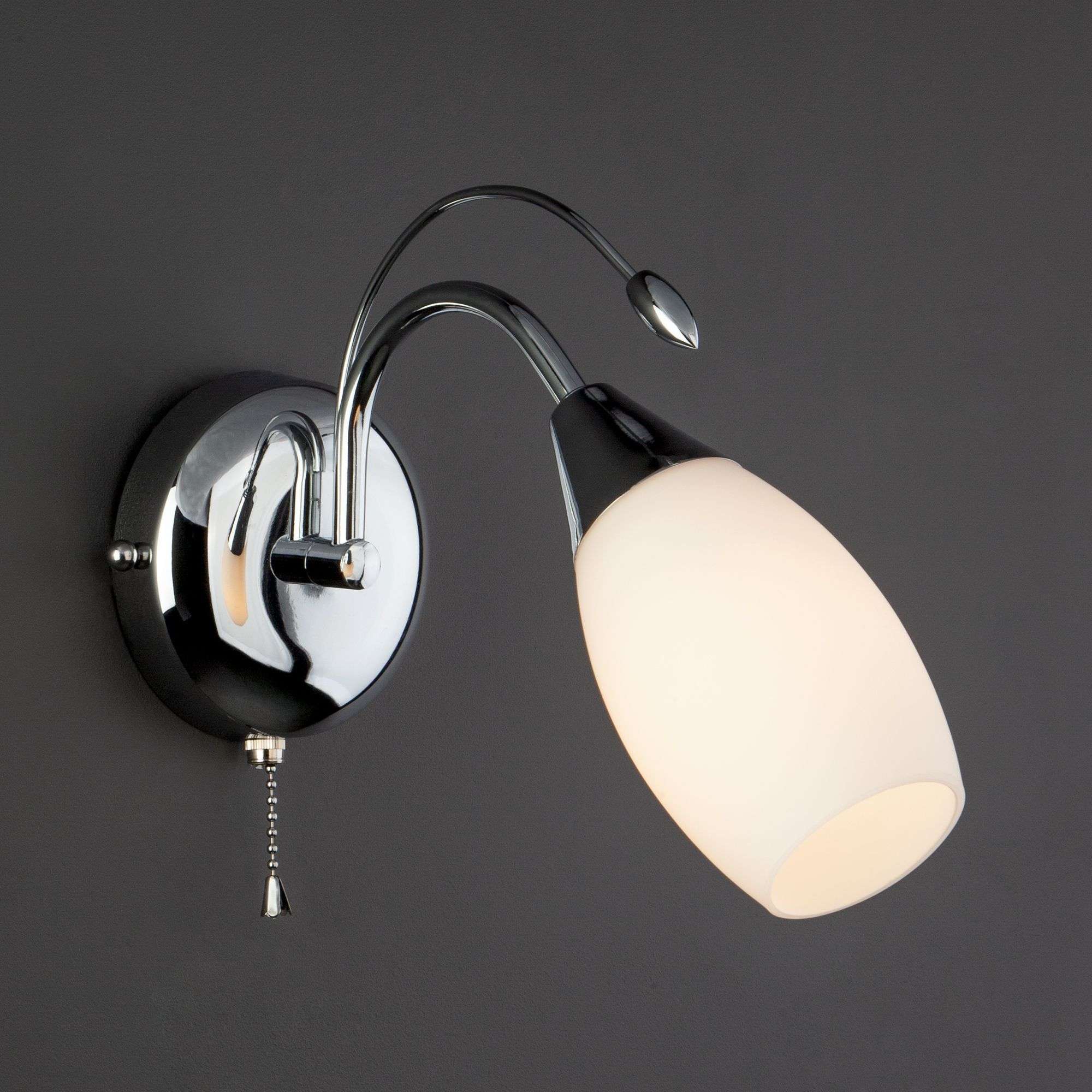 Бра с плафоном и выключателем 22080/1 хром создаст качественное дополнительное освещение и станет эффектным дополнением к основному источнику света. Благодаря белому стеклянному плафону бра создает мягкое равномерное свечение, подходящее для комфортного чтения книг в вечернее время. В качестве источника света используются сменные лампы типа "Свеча" или "Шар" с цоколем E14.