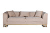Диван Lucerne отличается силуэтом с прямыми углами, но при этом не выглядит громоздко за счет того, что нижняя часть приподнята на основании из металлического профиля. Внешняя часть декорирована прострочкой по приятному бежевому велюру, основание выполнено из нерж.стали с глянцевым золотым покрытием.