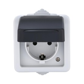 Розетка LK Studio открытой установки с заземляющими контактами и защитными шторками (белый) 813204