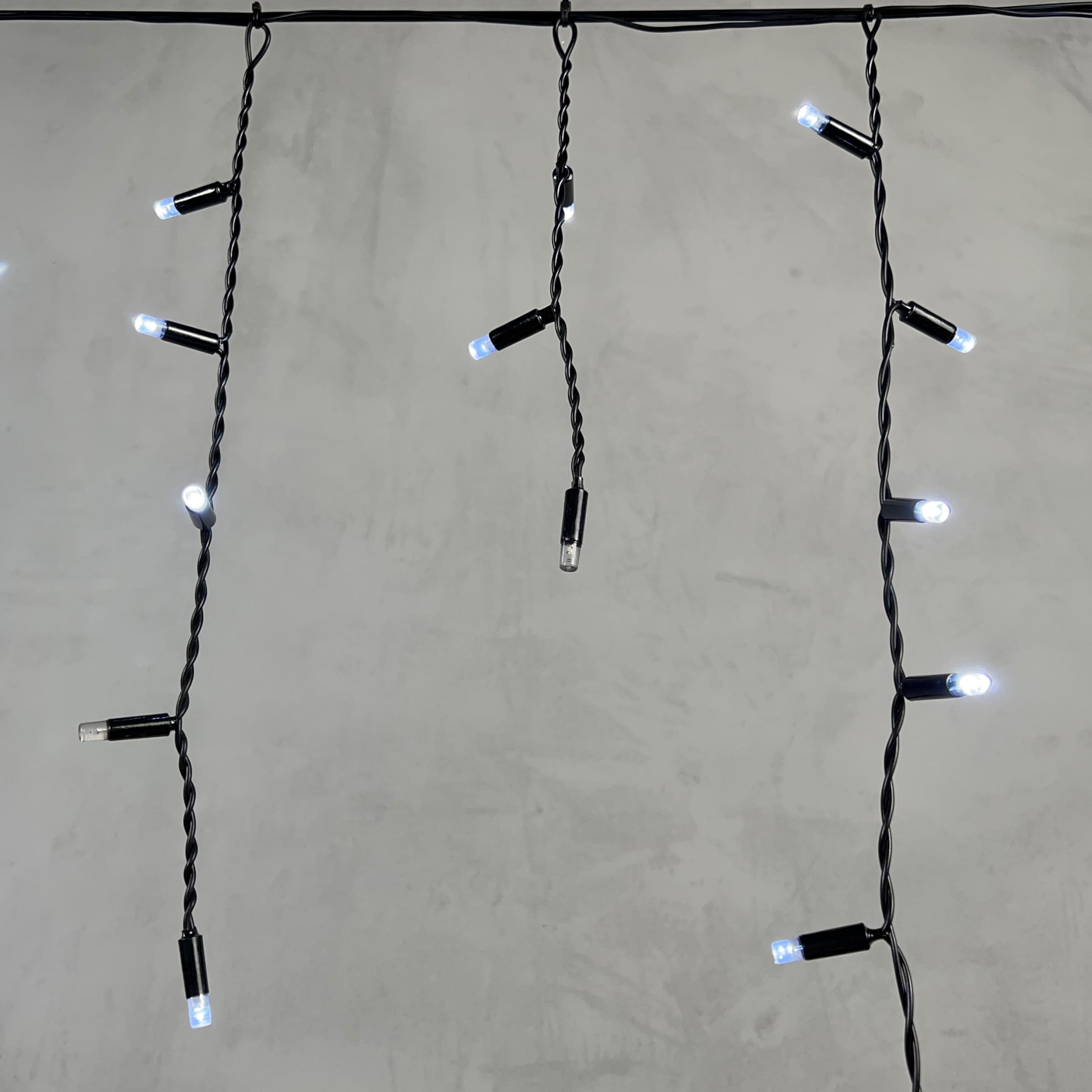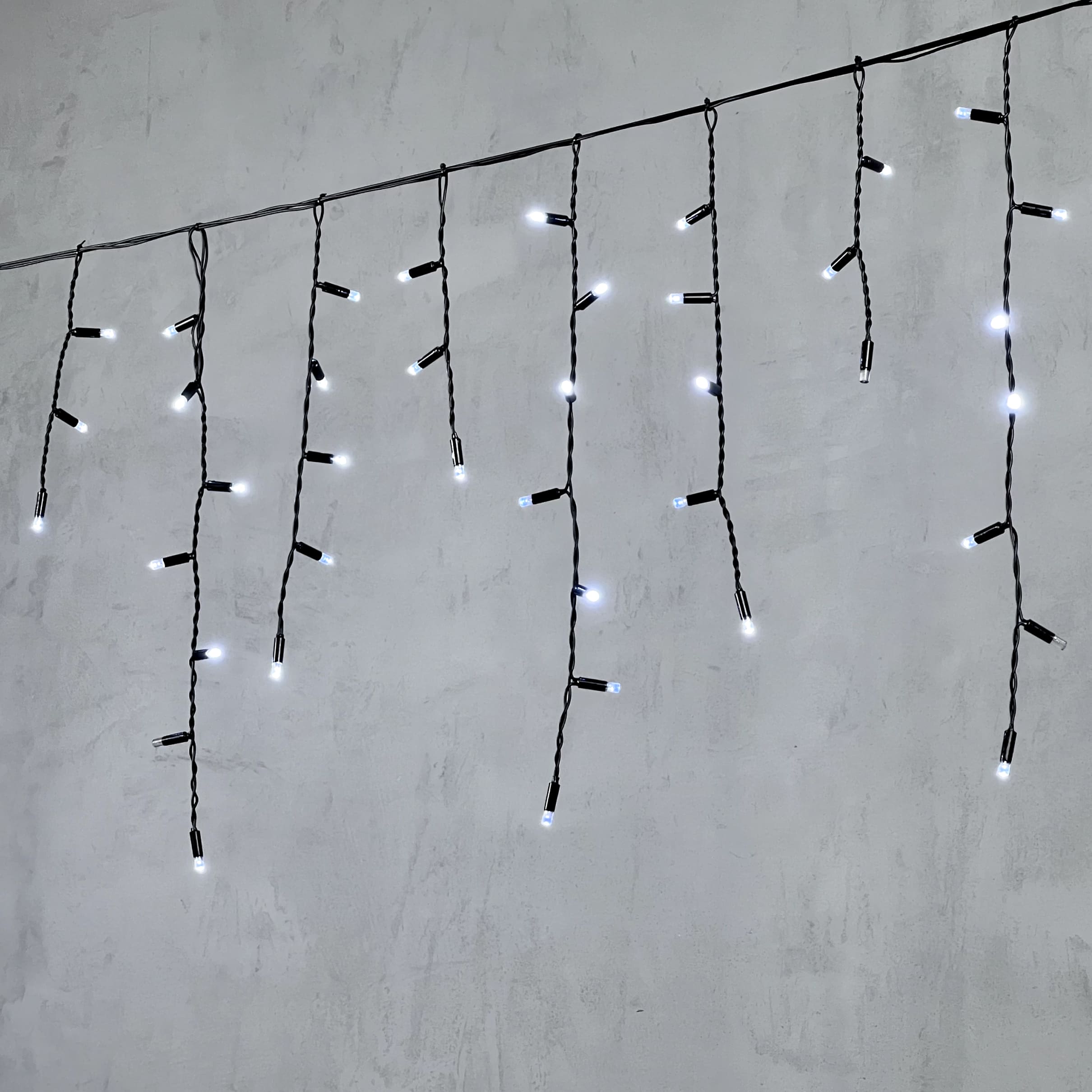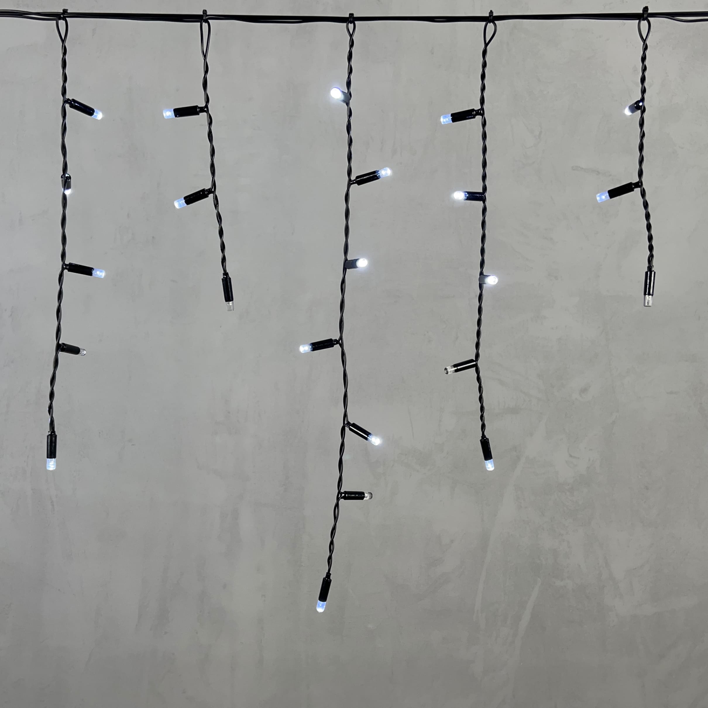 Гирлянда Бахрома с Колпачком 3, 1 x 0, 5 м Белая с Мерцанием Белого Диода 220В, 120 LED, Провод Черный ПВХ, IP65 LTC PIL120BLWCAP-11-2W в Альметьевске