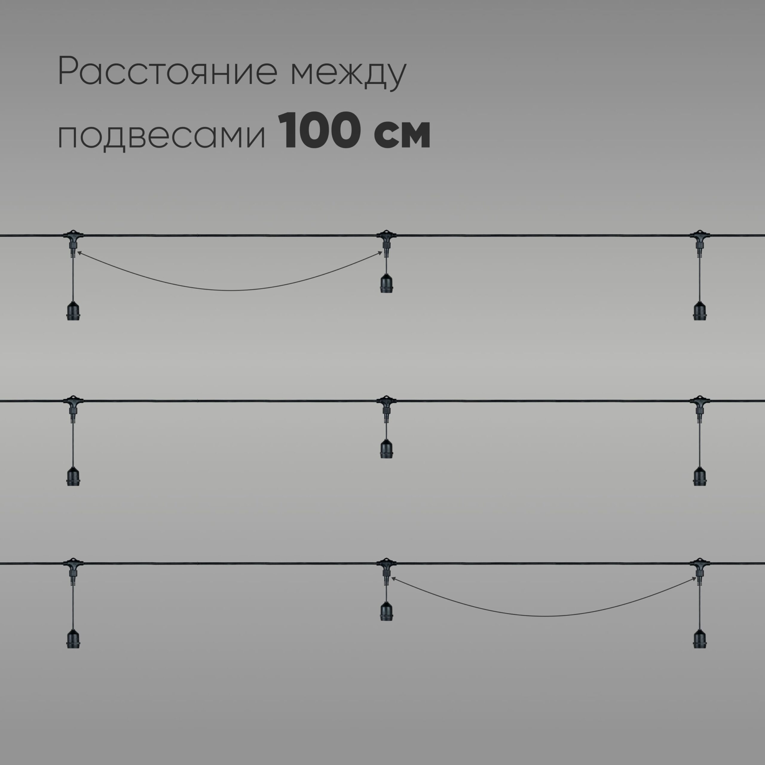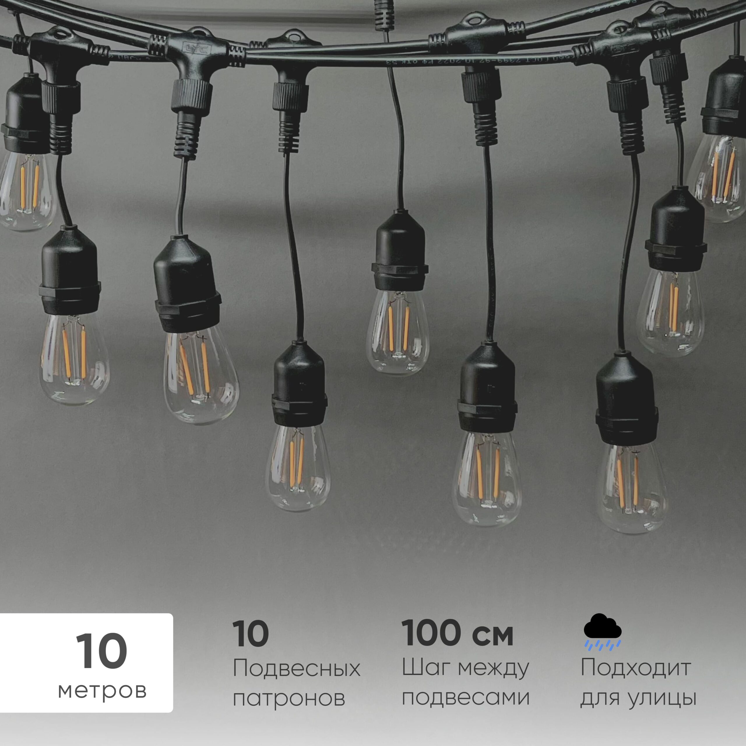 Белт-Лайт UNIBELT 10м, Провод Черный Каучук, Шаг 100 см, 10 Подвесных Патронов, IP65 LTC UBL10m/10L-1 в Альметьевске