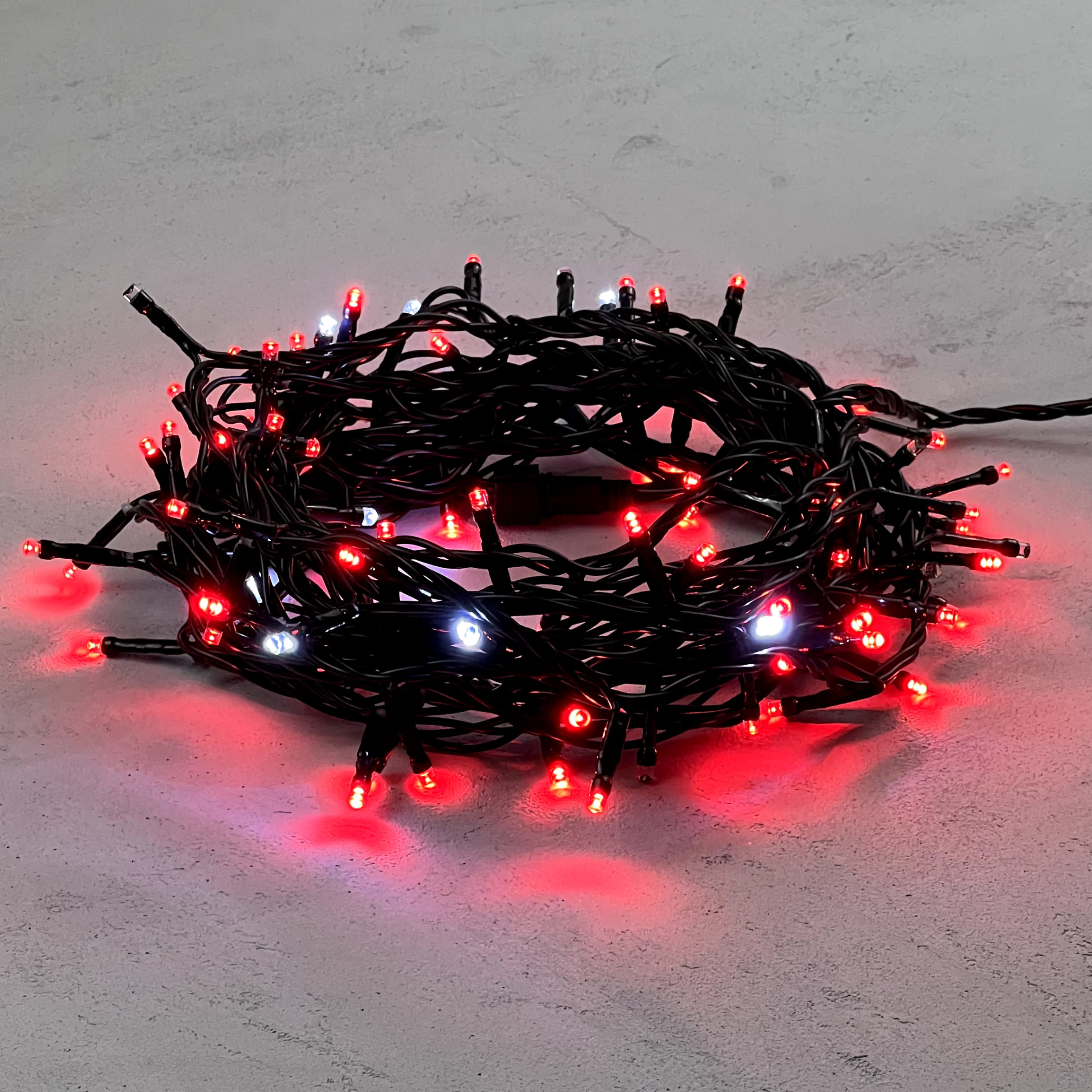 Гирлянда Нить 10м Красная с Мерцанием Белого Диода 24В, 100 LED, Провод Черный ПВХ, IP54 LTC PST100BLW-11-1R в Альметьевске