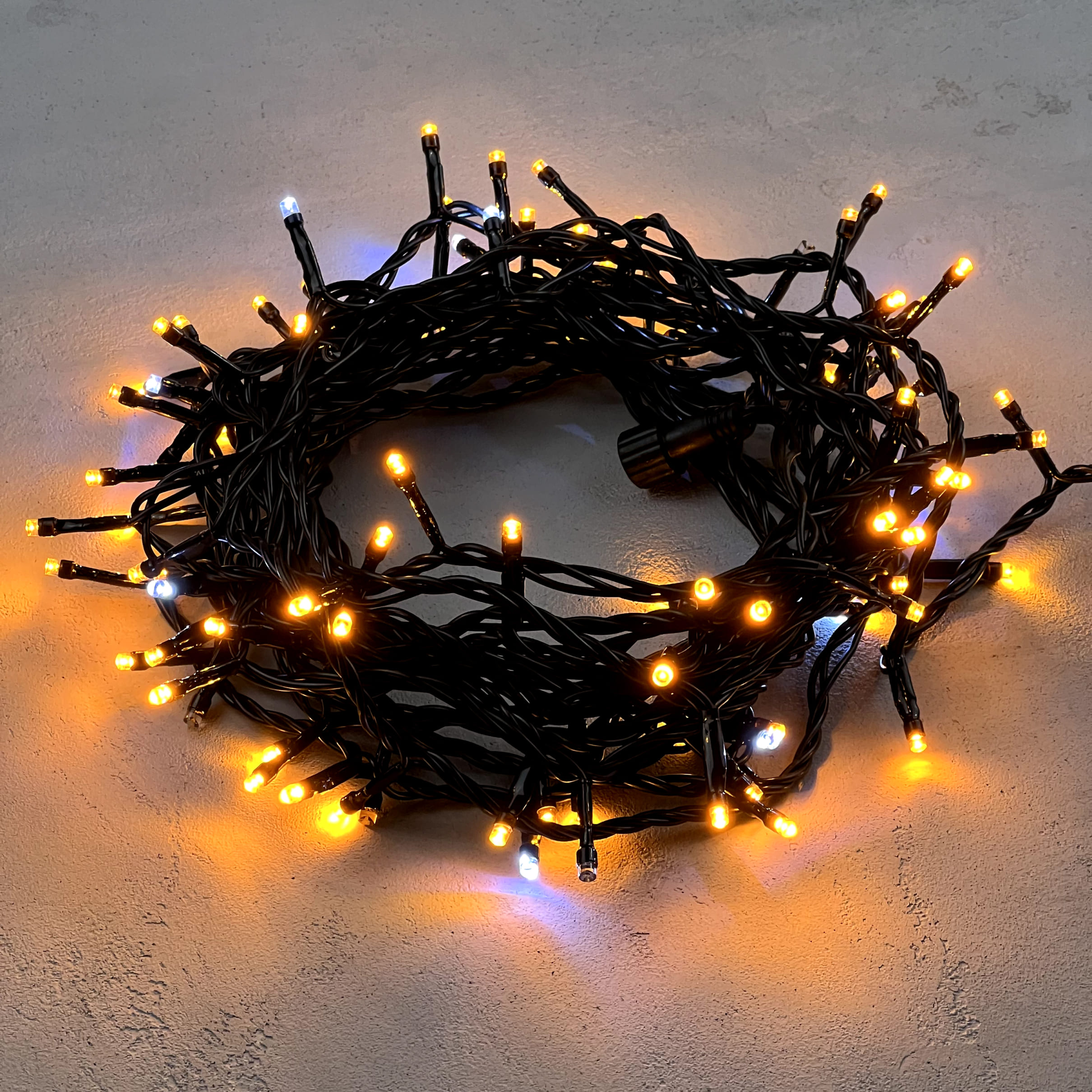 Гирлянда Нить 10м Желтая с Мерцанием Белого Диода 24В, 100 LED, Провод Черный ПВХ, IP54 LTC PST100BLW-11-1Y в Альметьевске