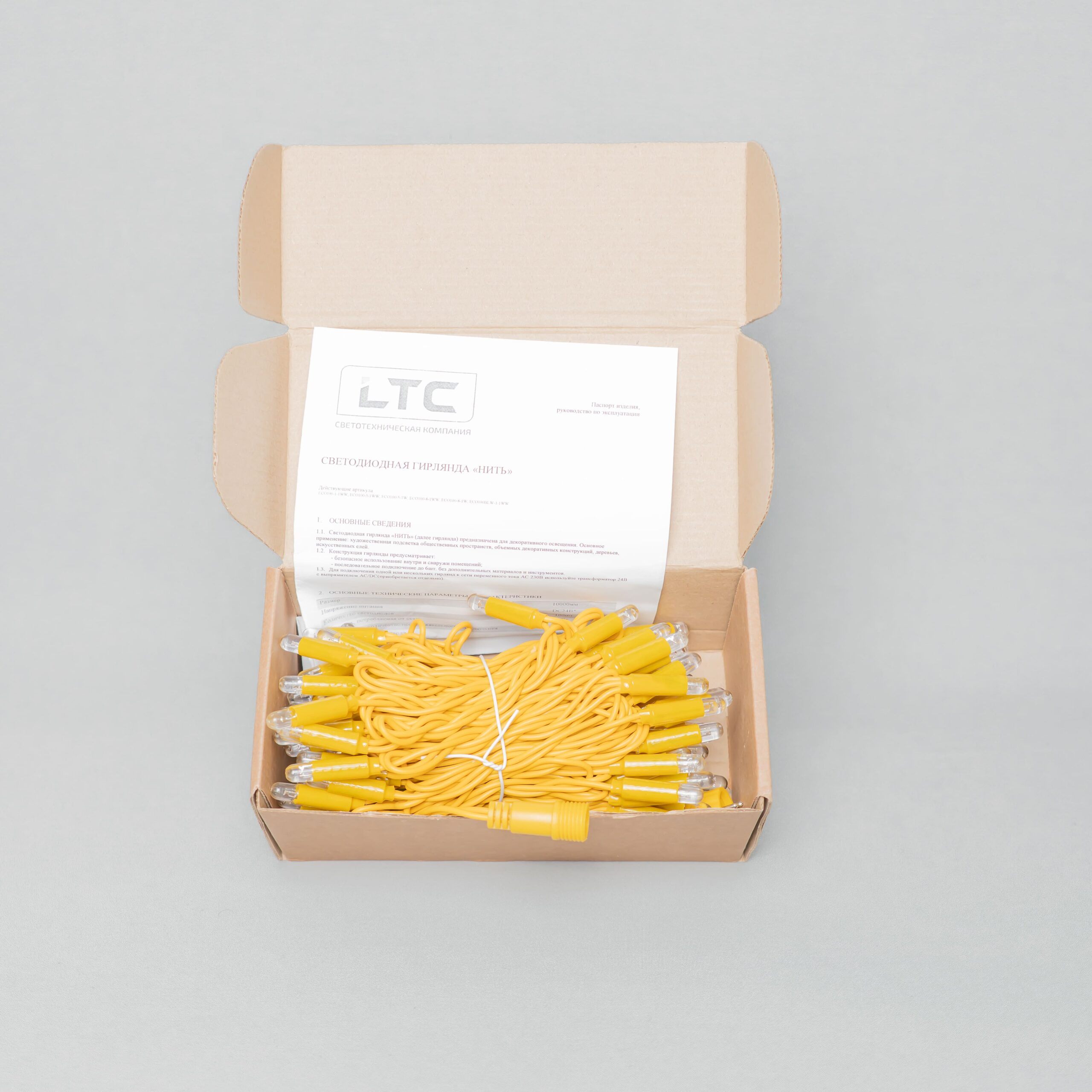 Гирлянда Нить с Колпачком 10м Тепло-Белая 24В, 100 LED, Провод Золотой ПВХ, IP65 LTC PST100CAP-12-1WW в Альметьевске