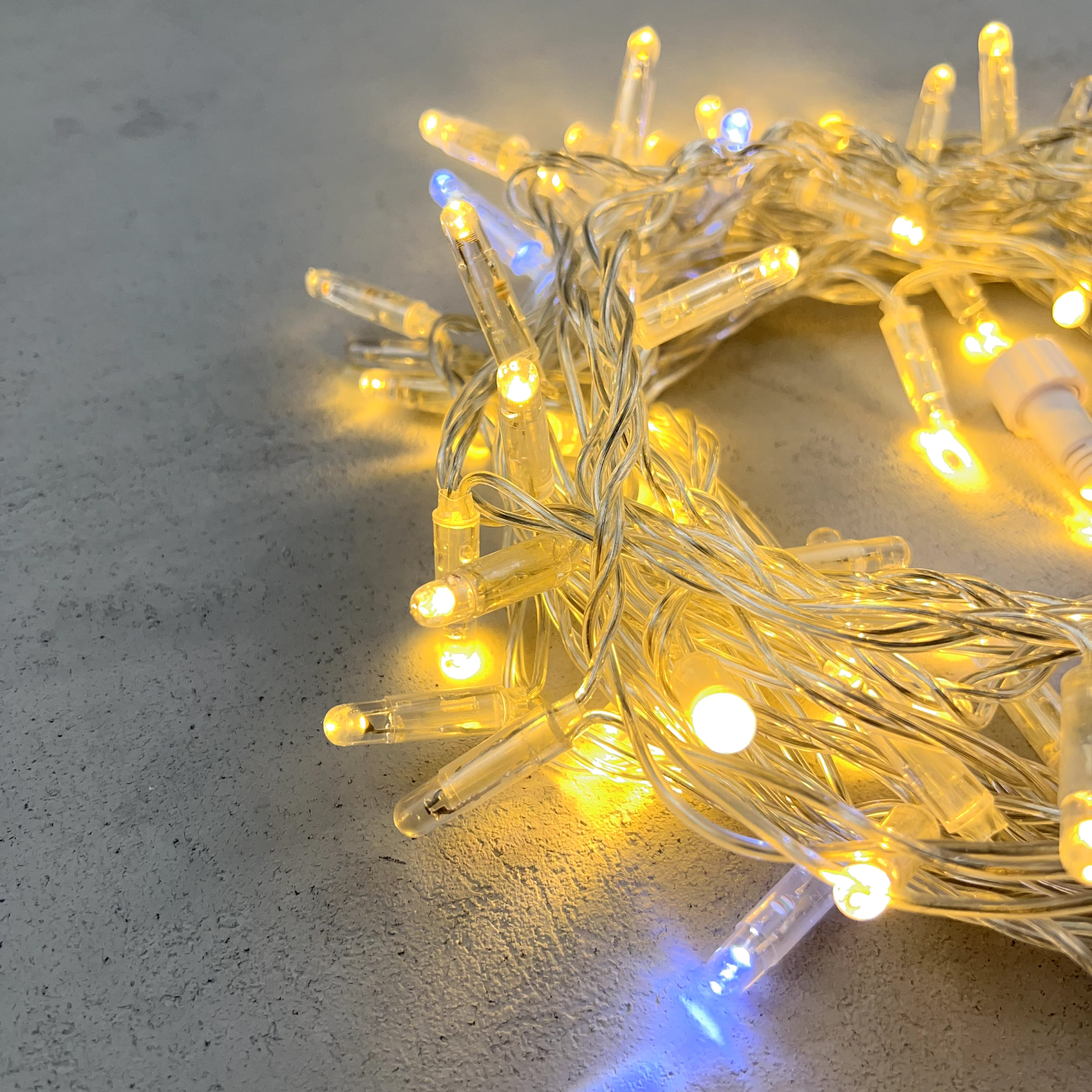 Гирлянда Нить с Колпачком 10м Тепло-Белая с Мерцанием Белого Диода 220В, 100 LED, Провод Прозрачный ПВХ, IP65 LTC PST100BLWCAP-10-2WW в Альметьевске