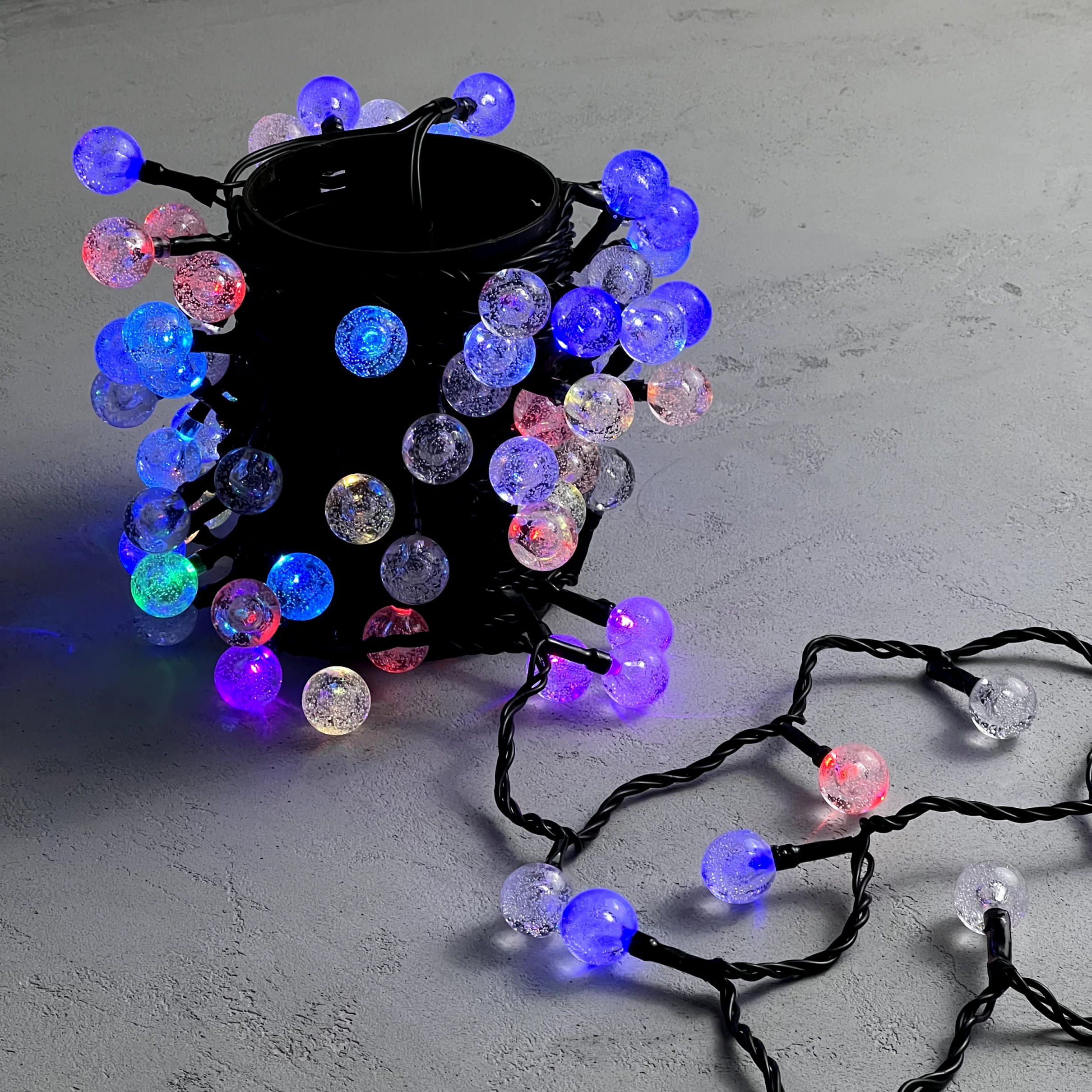 Гирлянда «Шарики» 10м Разноцветная 220В, Диаметр Шарика 23мм, 100 LED, Провод Черный Каучук 2, 3мм, IP54 LTC PCS-100B-RGB в Альметьевске