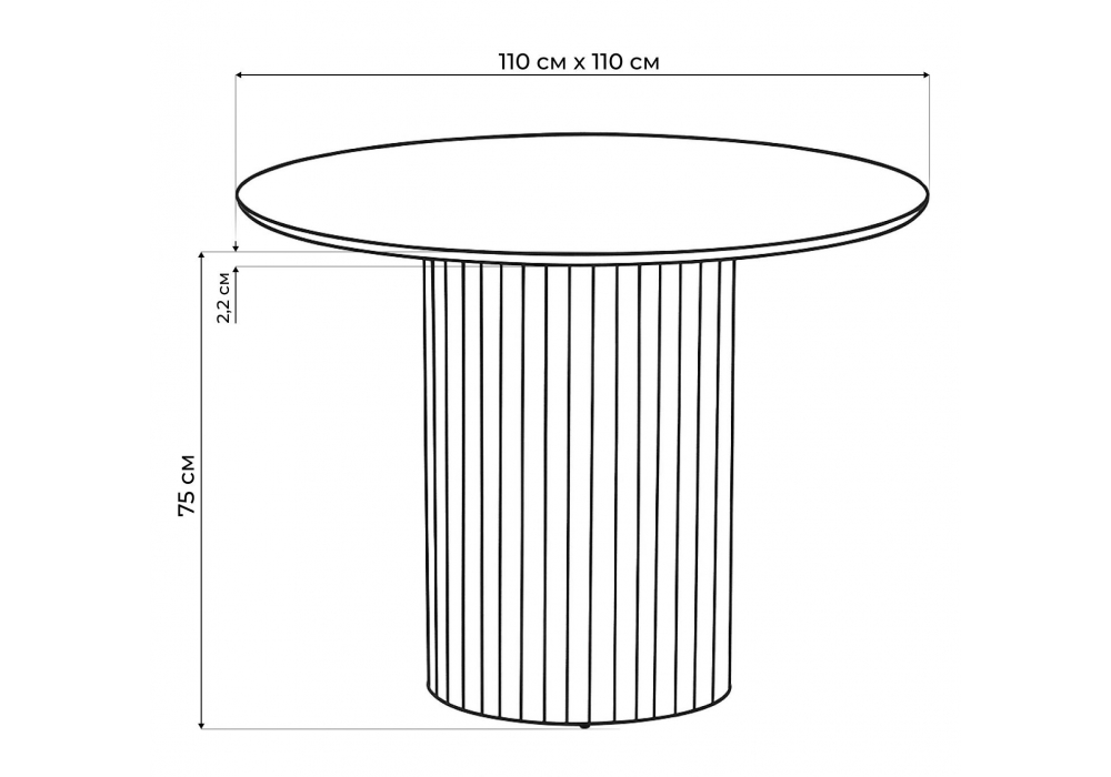 Материал каркаса - металл; Материал столешницы - Керамика; Цвет ножек - черный; Ширина - 110; Высота - 75; Длина - 110;