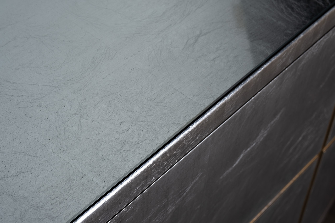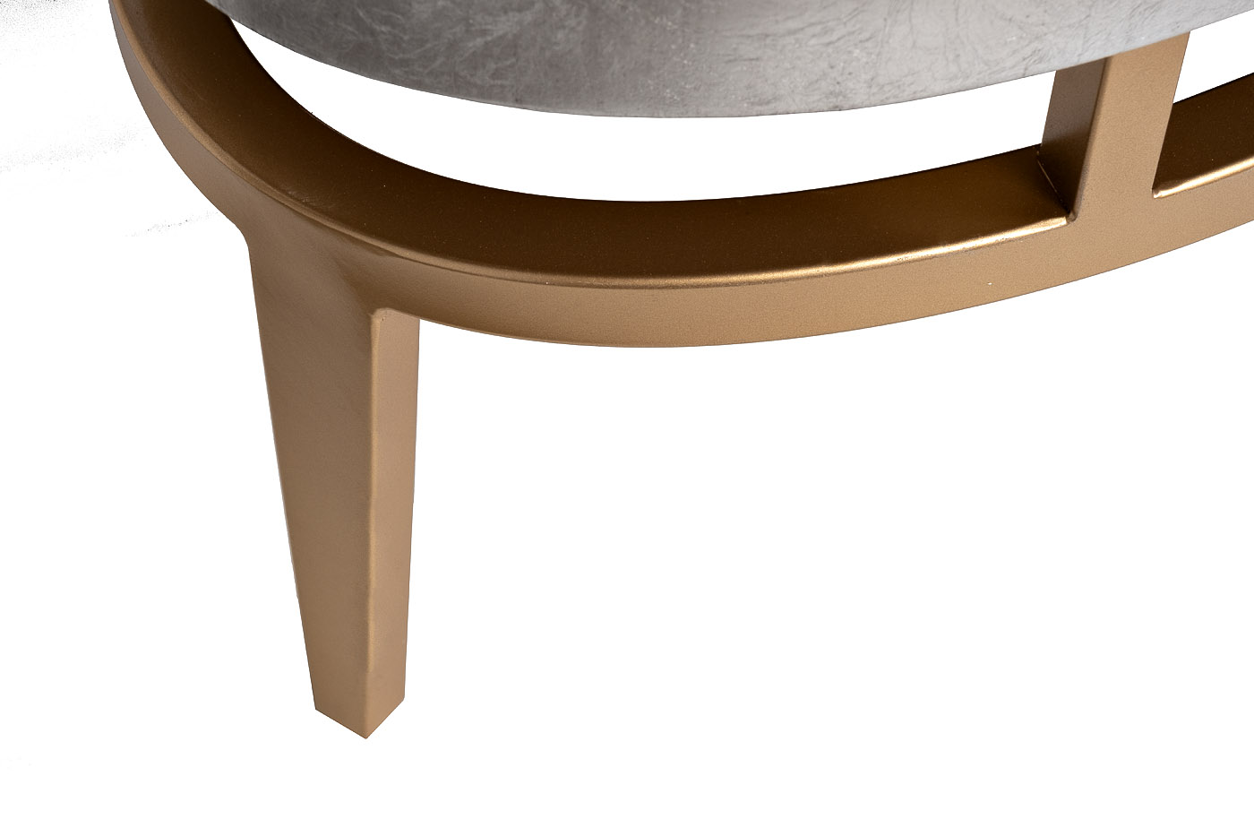 Футуристичный дизайнерский комод потрясает чистотой линий и минималистичностью форм. В начале ХХ века для произведений живописи и архитектуры в стиле футуризма были характерны длинные динамические линии и чистые геометрические формы, предполагающие новый уклад жизни, движение и обновление. Вертикальные и горизонтальные вставки золотисто-медного цвета, овальная опора с ножками, перекликающаяся с формой комода, делают его удивительно современным, при этом создавая вполне ощутимую иллюзию стиля 10-х годов прошлого века. Корпус комода покрыт тончайшими листьями серебристой фольги и покрыт сверху лаком по авторской технологии. Четыре распашные дверцы с механизмом push-to-open открывают доступ в два боковых и одно центральное отделение с полкой. В комплект входит дополнительная стеклянная столешница, защищающая поверхность от царапин. Комод прокрашен и залакирован со всех сторон, чтобы устанавливать его в любом месте помещения. Дополните комод кофейным или журнальным столиками арт. ART-2705-ET, арт. ART-2705-C