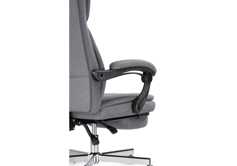 Диаметр крестовины: 68 см. Материал каркаса - Металл; Материал сиденья - Ткань; Материал ножек - Металл; Материал обивки - Ткань; Цвет каркаса - Хромированный металл; Цвет сиденья - Серый; Цвет ножек - Хромированный металл; Цвет обивки - Серый; Ширина - 65; Глубина - 63; Высота - 105; Ширина сиденья - 52; Глубина сиденья - 50; Высота сиденья - 40; Высота сиденья максимальная - 48; Высота максимальная - 113;