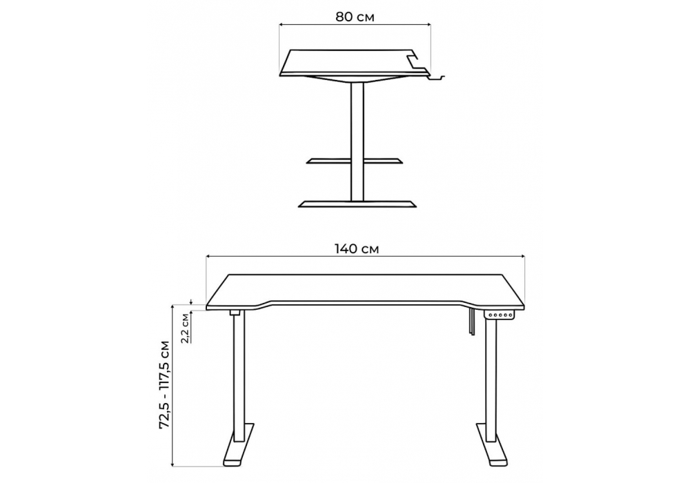 Материал каркаса - металл; Цвет ножек - черный; Ширина - 80; Высота - 72,5 - 117,5; Длина - 140;
