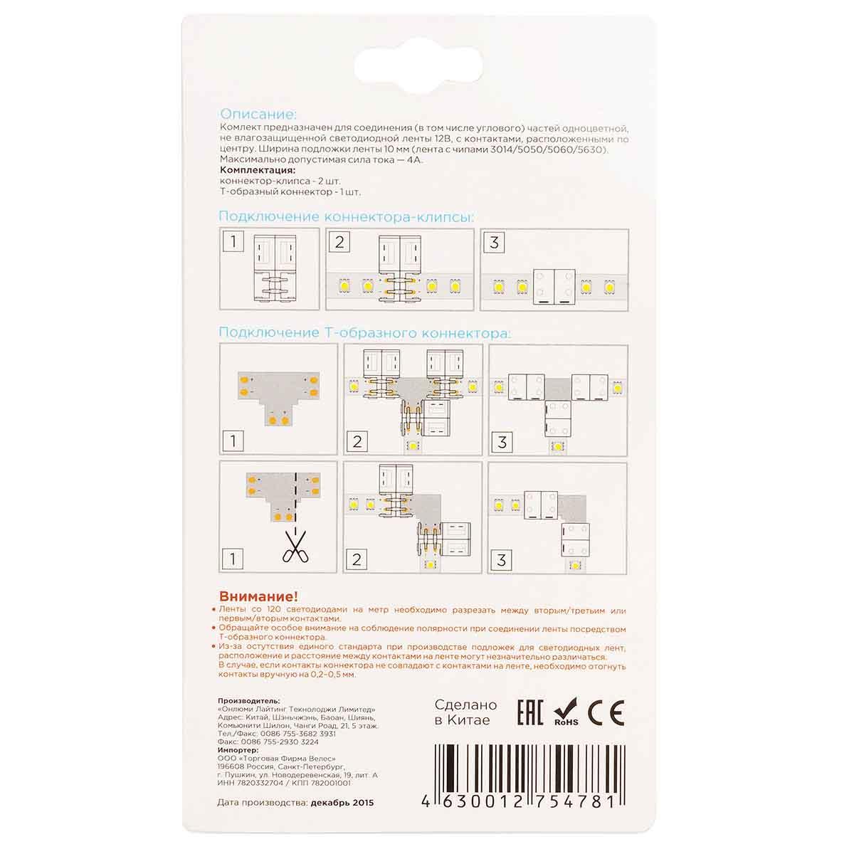 Коннектор T-образный для одноцветной светодиодной ленты 3014/5060/5050/5630 Apeyron 12/24V 09-08 в Альметьевске