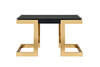 Коллекция мебели Marbella от ведущего бельгийского дизайнера Тома Де Вульфа воплощает концепцию элегантного и современного интерьера кабинета или гостиной. Столешница консоли изготовлена из высококачественного тонированного закаленного стекла; база выполнена из черного матового МДФ и полированной стали с медным покрытием. Чистые линии, прямые углы в дизайне и декоре, беспроигрышная комбинация черного и золотого цветов, тщательная отделка производят впечатление благородной роскоши и хорошего вкуса. Все части консоли выполнены из исключительно качественных материалов по самым современным технологиям. В нашем ассортименте вы можете подобрать журнальный стол арт. 58DB-CT18166, комоды арт. 58DB-CH18166, арт. 58DB-CHH18166 и стеллаж арт. 58DB-SH17071B в стиле Marbella. На нашем сайте вы также найдете изысканные светильники, интерьерные украшения и аксессуары из золотистого металла, которые сделают ваш интерьер законченным и уникальным.