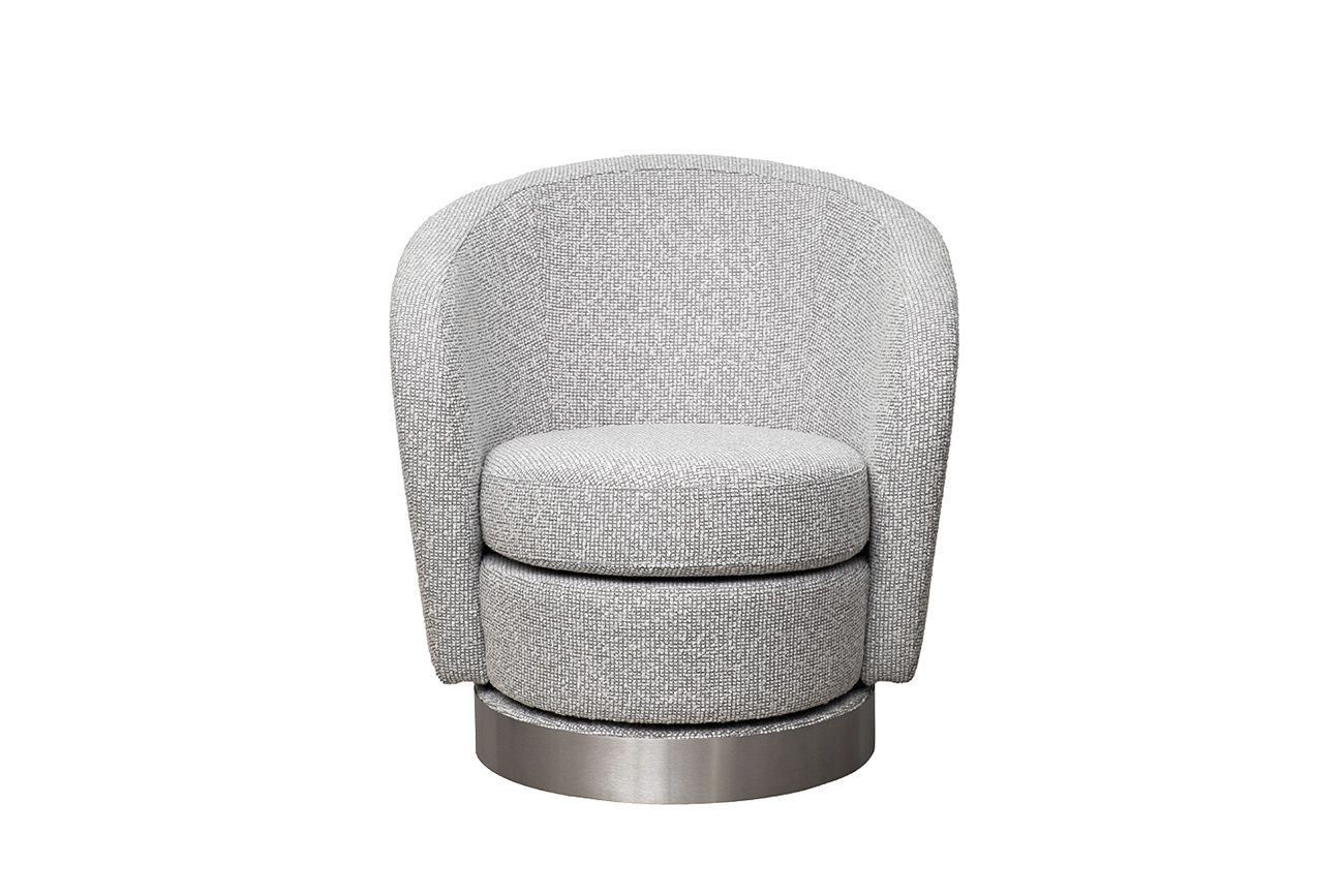 Если хотите купить вращающееся кресло, обратите внимание на модель Napoli с обивкой из рогожки. Это эффектная, практичная и невероятно удобная модель, которая легко сочетается с другой современной мебелью за счет универсального дизайна и нейтрального цвета. Стильное кресло из серой рогожки выглядит дорого и статусно благодаря позолоченному декору на основании. Оно будет прекрасно смотреться в гостиной или спальне, а за счет компактных размеров найдет себе место даже в небольшой прихожей. Обивка легко чистится, не накапливает в себе пыль, сохраняет первоначальный внешний вид долгие годы. Компания Garda Decor может изготовить данное кресло под заказ в любых других вариантах ткани. Габариты сиденья: ширина 49см, глубина 52см, высота 41см. Диаметр металлической части основания - 54см, высота - 8см. Материалы: обивка - рогожка(26% хлопок, 26% акрил, 48% полиэстер), каркас - дерево, основание - метал
