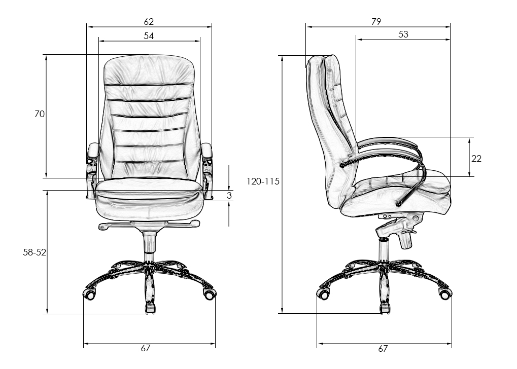 - Ширина сиденья: 540 мм