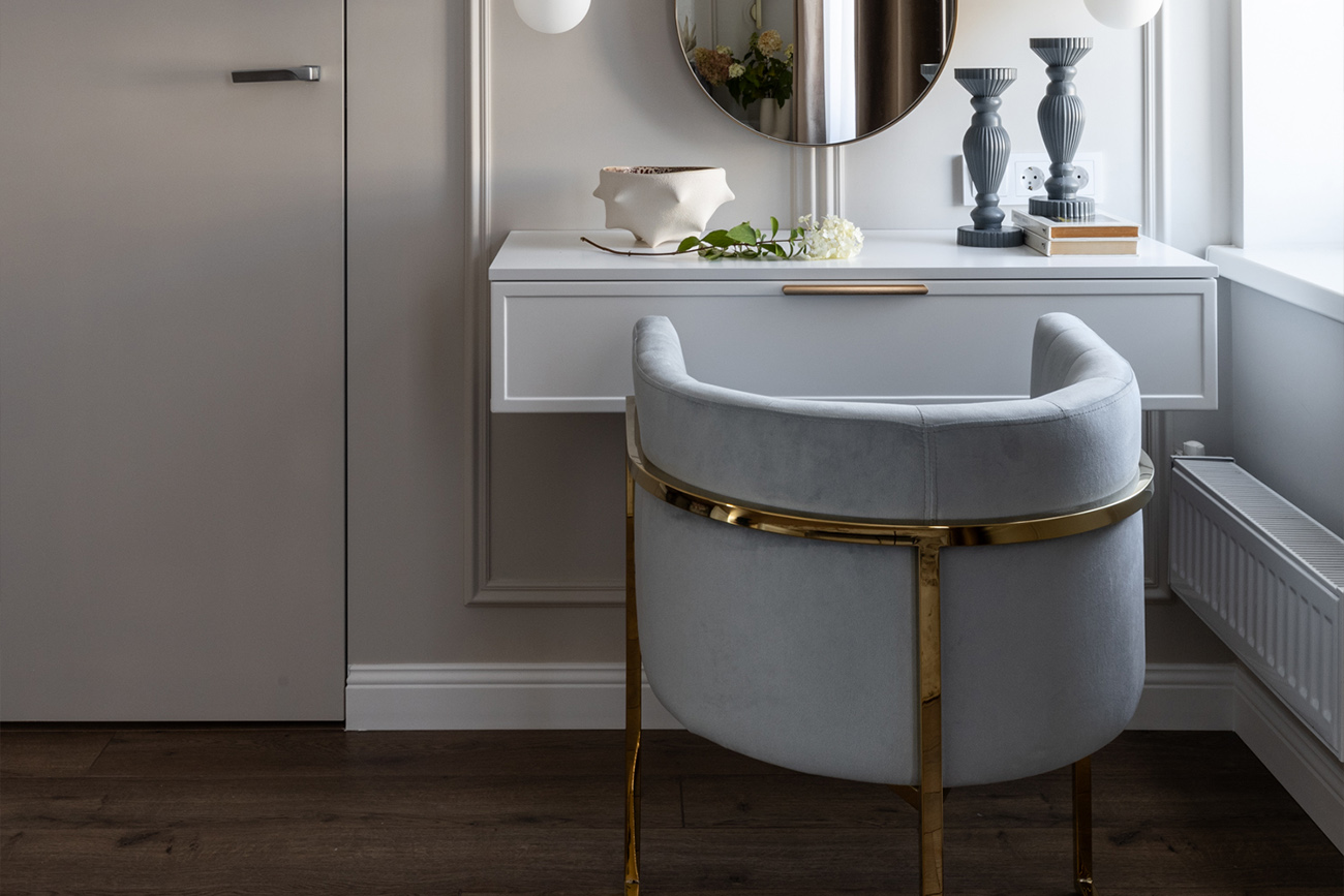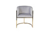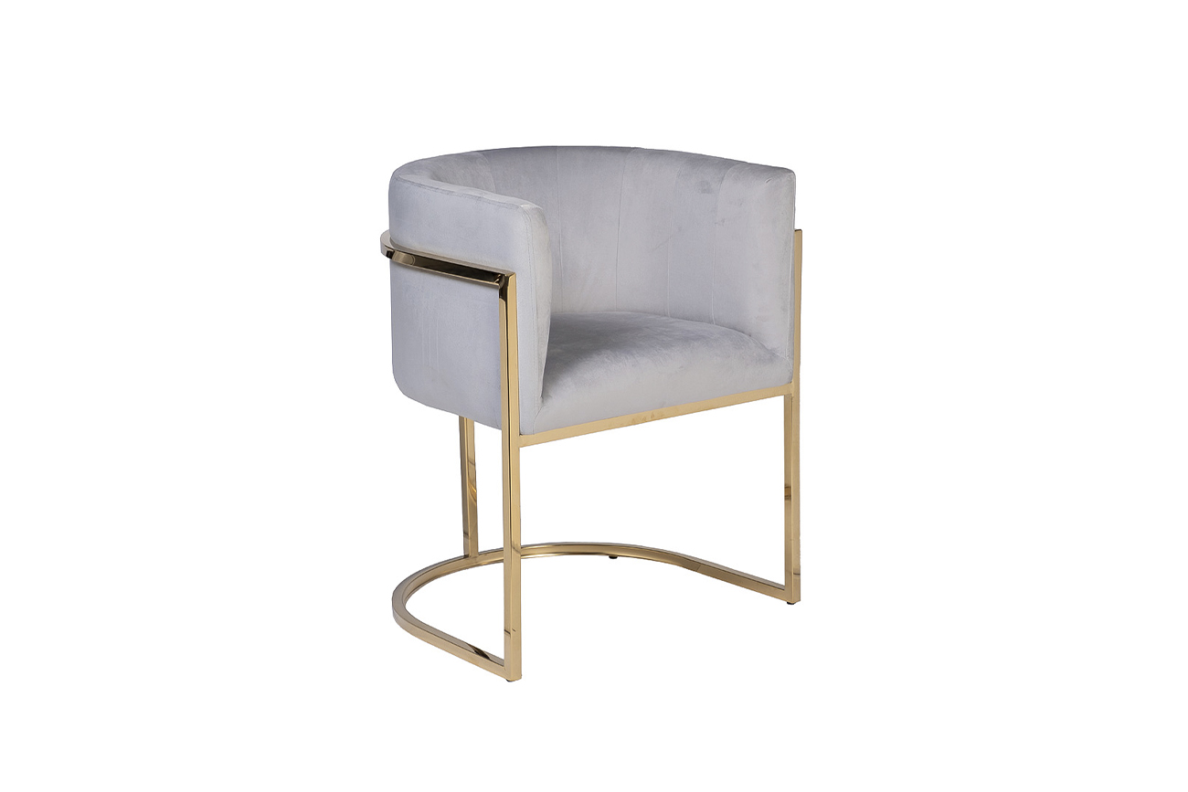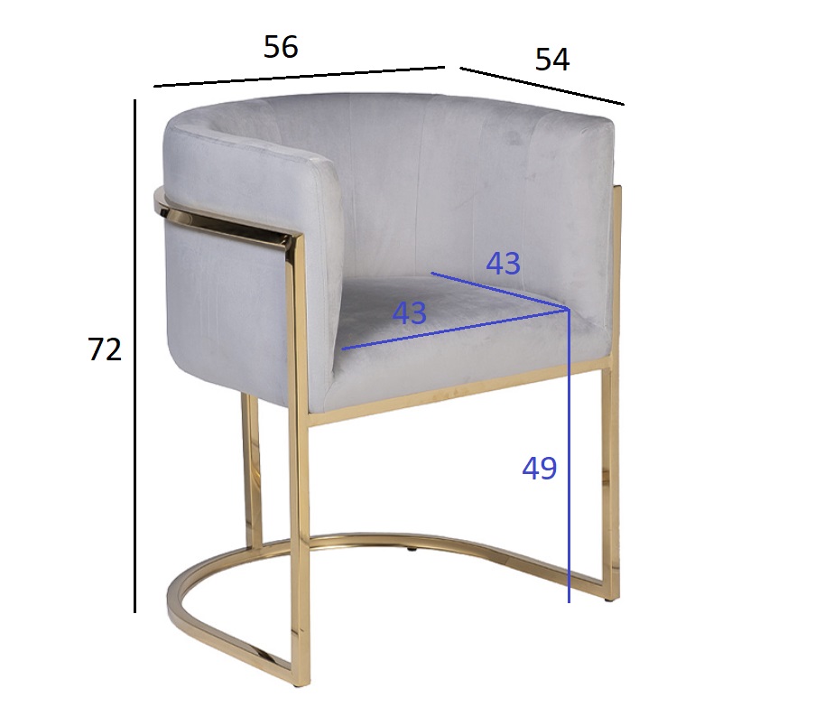 Удобное кресло с полукруглой спинкой из приятного серого велюра с легким голубым оттенком, на основании из позолоченной нержавеющей стали. Велюровое кресло на металлическом каркасе сочетает в себе благородный золотой блеск металла и мягкую текстуру велюра. Удобная модель с полукруглой спинкой нежного серо-голубого цвета эффектно смотрится в интерьере и подходит как для жилого, так и для бизнес-пространства. Основание из нержавеющей позолоченной стали делает велюровое кресло не только красивым, но и долговечным предметом обстановки. Простые формы и нейтральный цвет делают эту модель универсальной. Предлагаем купить это серо-голубое кресло, или аналогичные модели в других оттенках и вариантах дизайна. Габариты сиденья: ширина 43см, глубина 43см, высота от пола 49см.