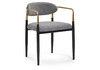 Высота подлокотников: 64 см. Материал каркаса - Окрашенный металл; Материал сиденья - Ткань; Материал ножек - Окрашенный металл; Материал обивки - Ткань; Цвет каркаса - Черный / золотой; Цвет сиденья - Серый; Цвет ножек - Черный; Цвет обивки - Серый; Ширина - 53; Глубина - 52; Высота - 69; Ширина сиденья - 45; Глубина сиденья - 45; Высота по сиденью - 45;