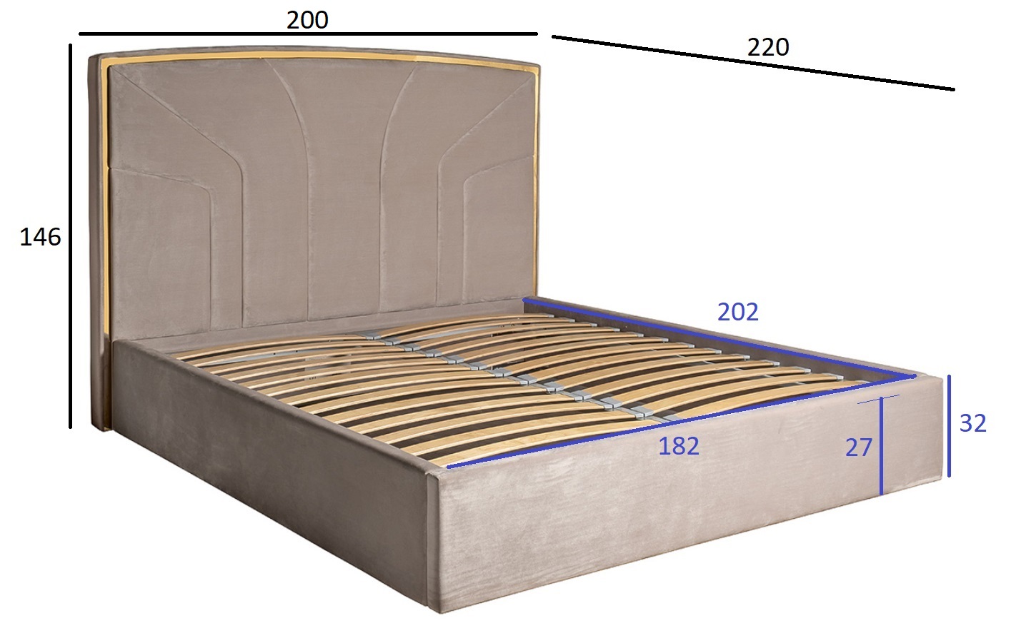 Спальное место 180*200см, без подъемного механизма.