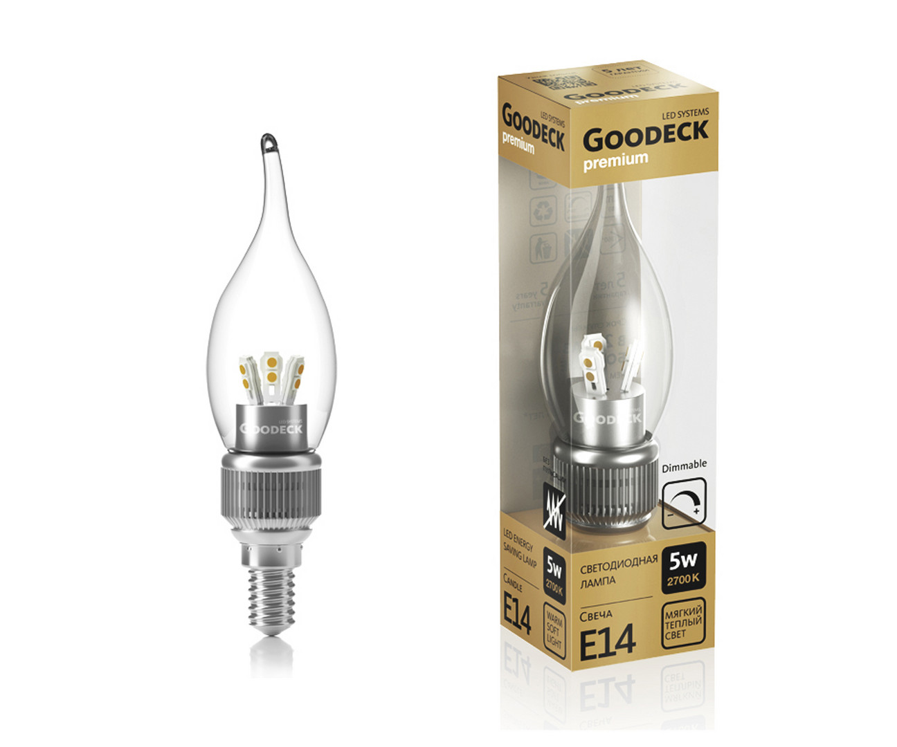 Лампа диммируемая E14 5W 2700К свеча на ветру Kink Light 1005011105D/GL в Альметьевске