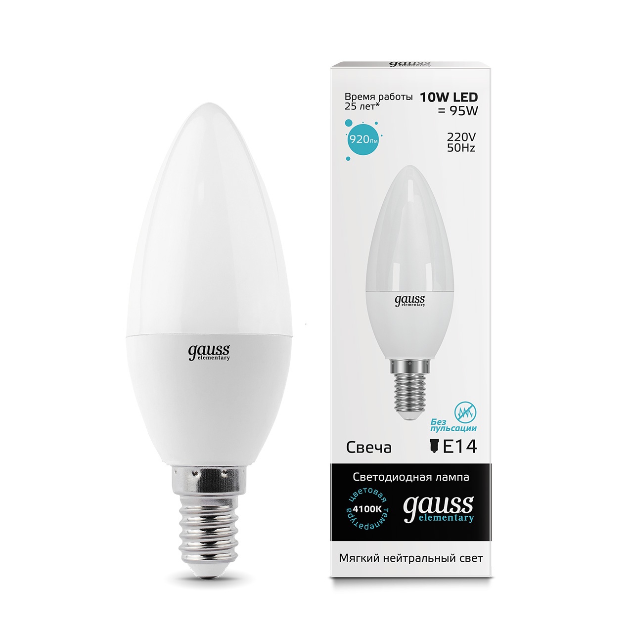 Купить "Лампа светодиодная E14 10W 4100K свеча матовая 33120"