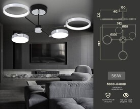 Потолочная светодиодная люстра с пультом ДУ Citilux Адам Смарт CL228A161 RGB