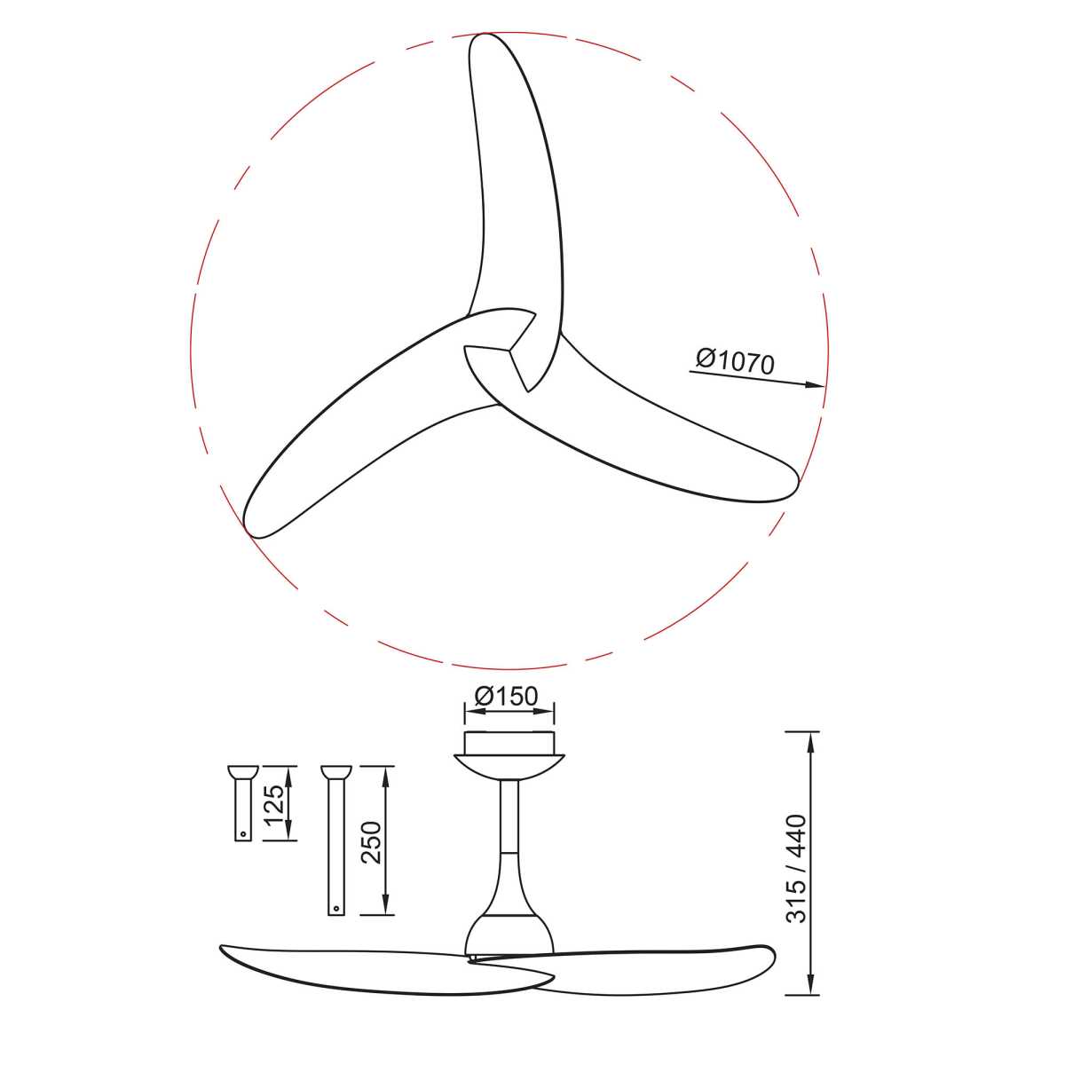 - Диаметр: 1070 мм (107 см)