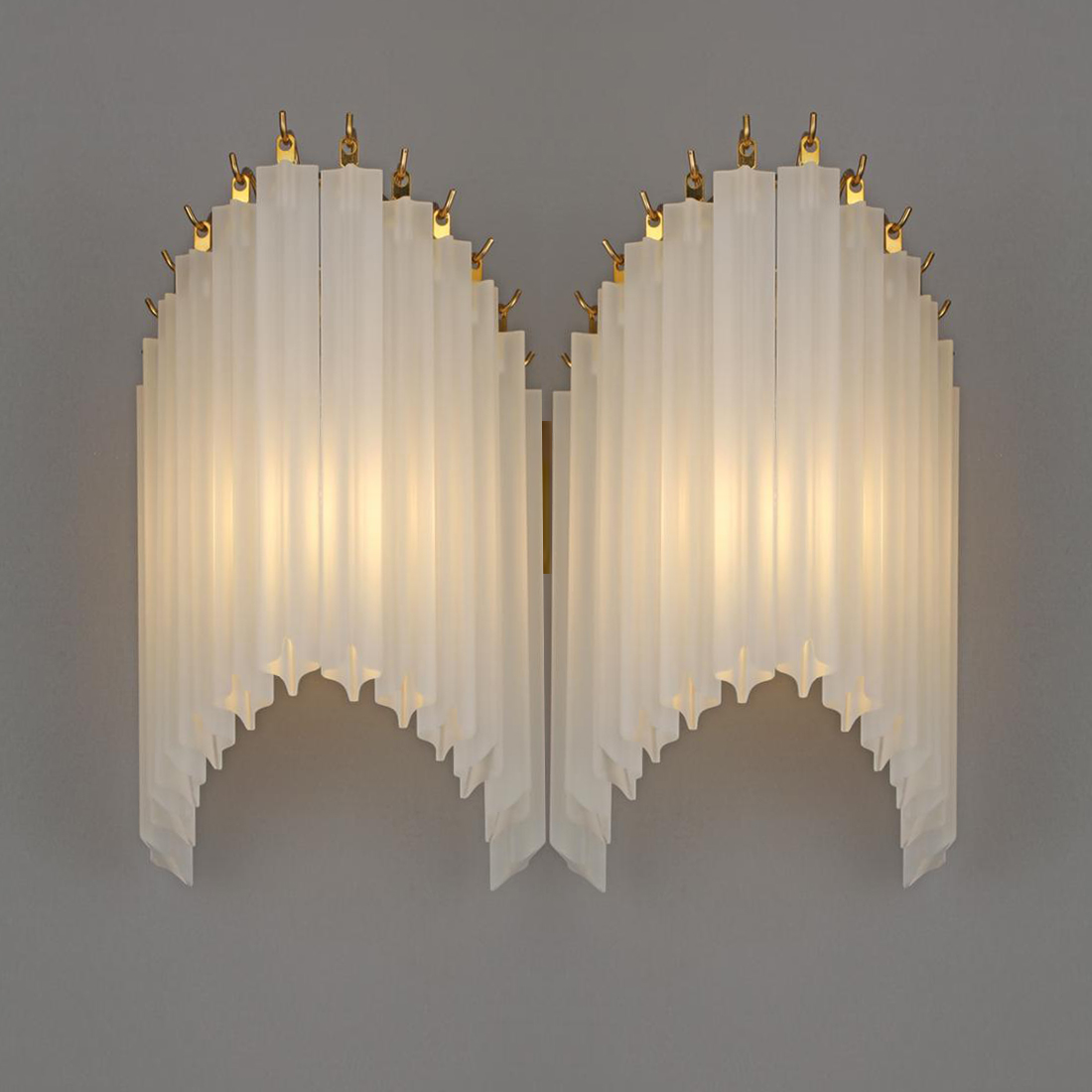 Настенный светильник Delight Collection 17965-2W gold с множеством длинных подвесок с фигурным сечением. Подвески выполнены из матового стекла.