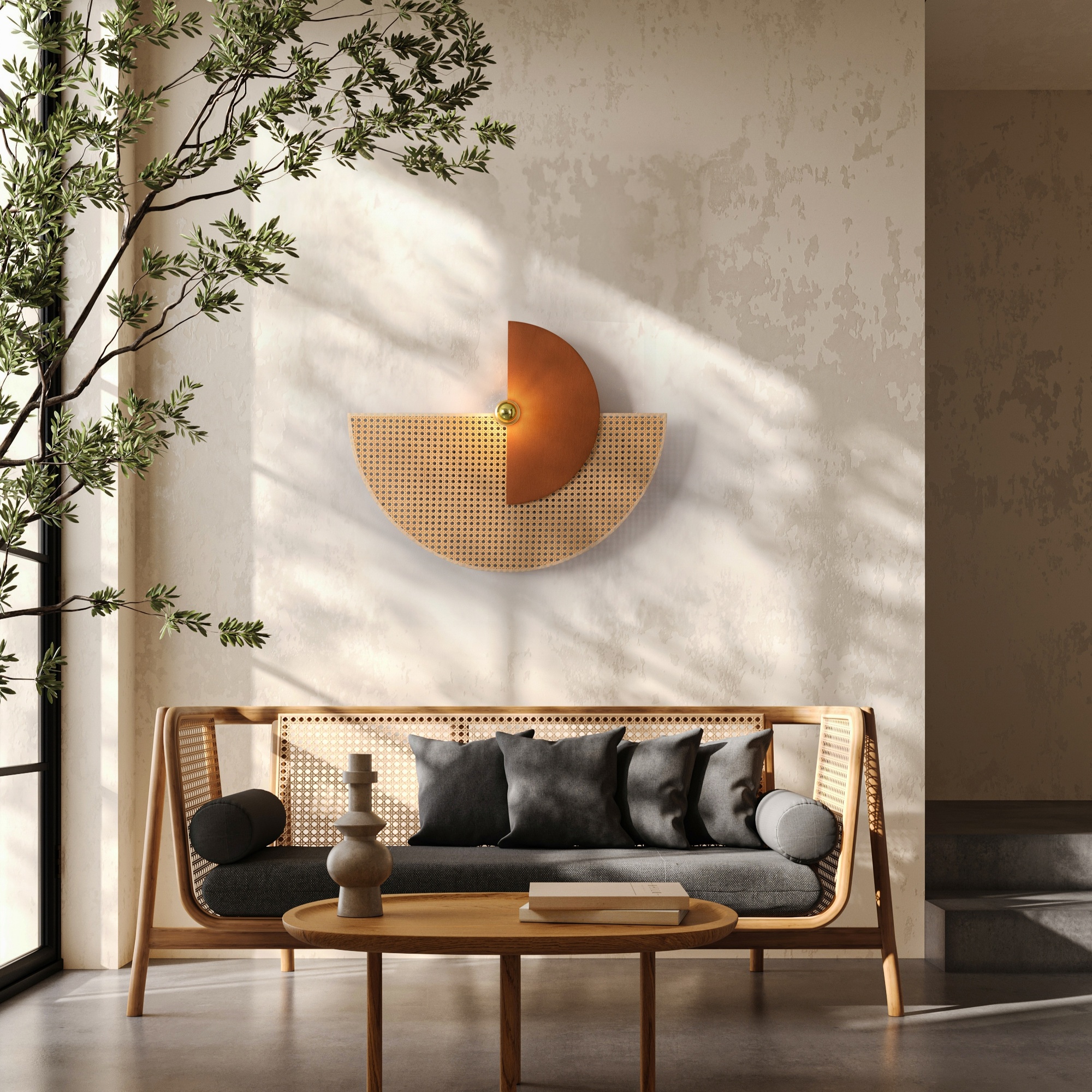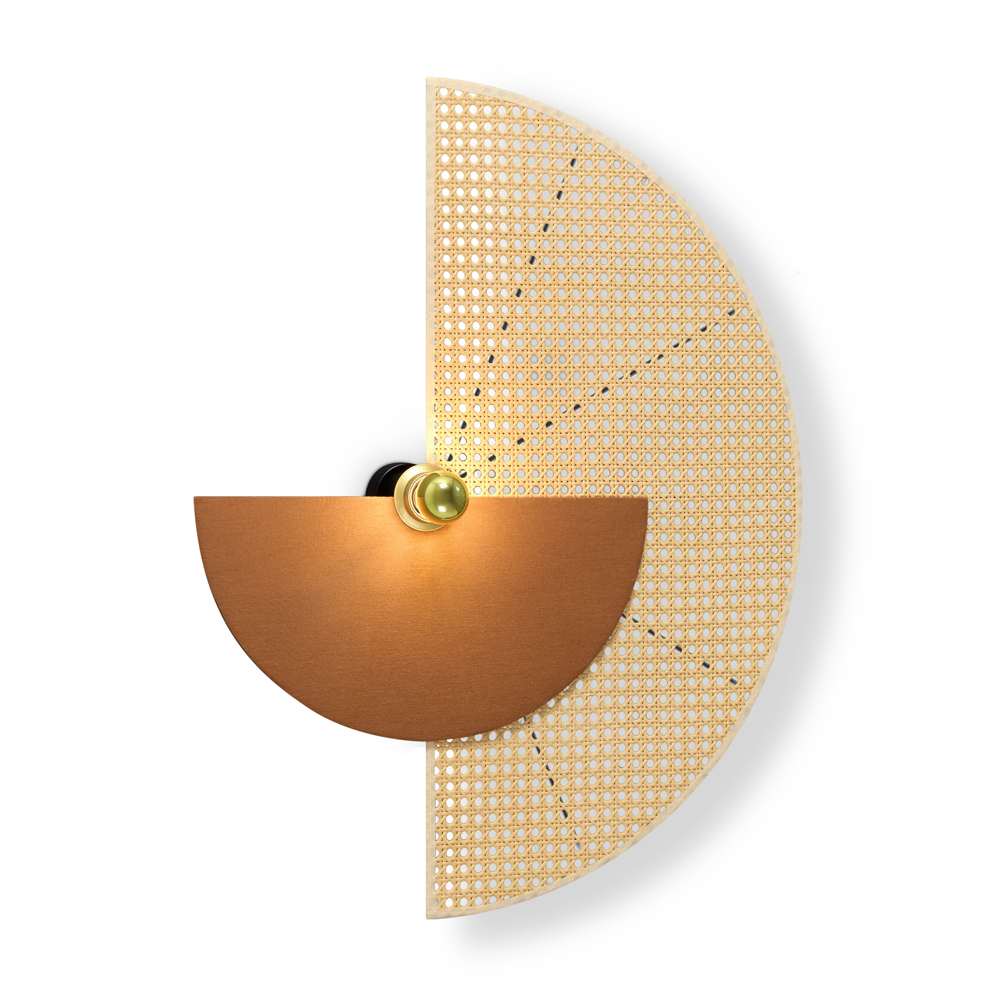 Тканевые настенные бра серии Carry это сочетание полукруга различных размеров. Абажуры выполнены из ткани и ротанга. Цветовые сочетания в трендах 2024-2025 года: белый, зеленый, терракотовый, винный, светло бежевый и ротанговый. Арматура — металл латунного цвета. Цоколь E27, рассчитан на лампу мощностью до 60 Вт в комплекте. Лампа с золотым напылением для скользящего освещения. Рекомендовано создавать собственные сценарии и располагать половинки абажура под разным углом друг к другу. Комплексная развеска создает необычный эффект на стене, визуально увеличивая пространство.