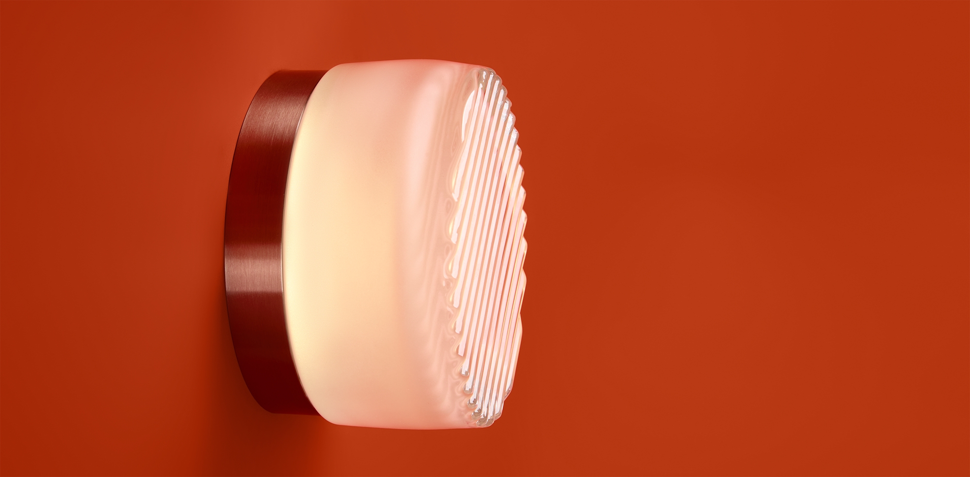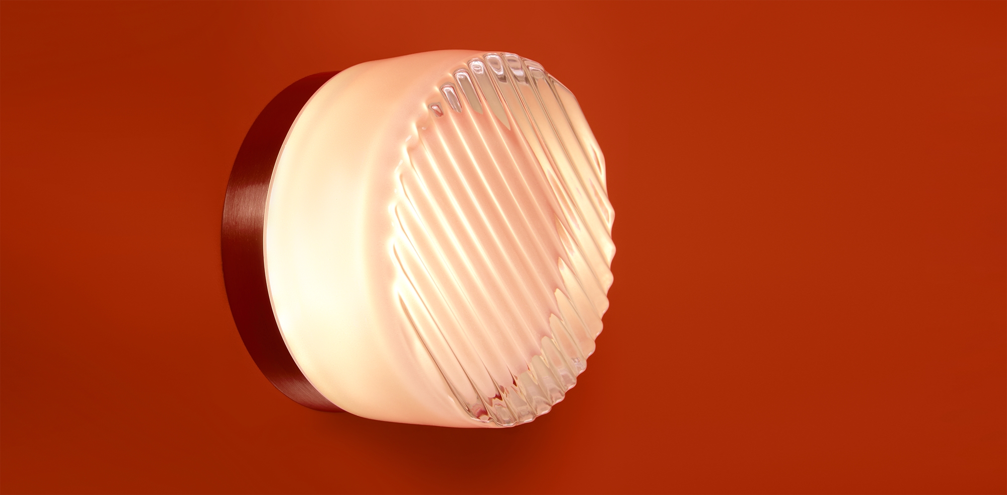 Металлическая арматура в цвете никель в трех рельефных основаниях. Плафоны, выполненные в приглушенно пшеничном и янтарном оттенках, доступны в двух размерах. LED источник света 2400К/2550К/3000K.