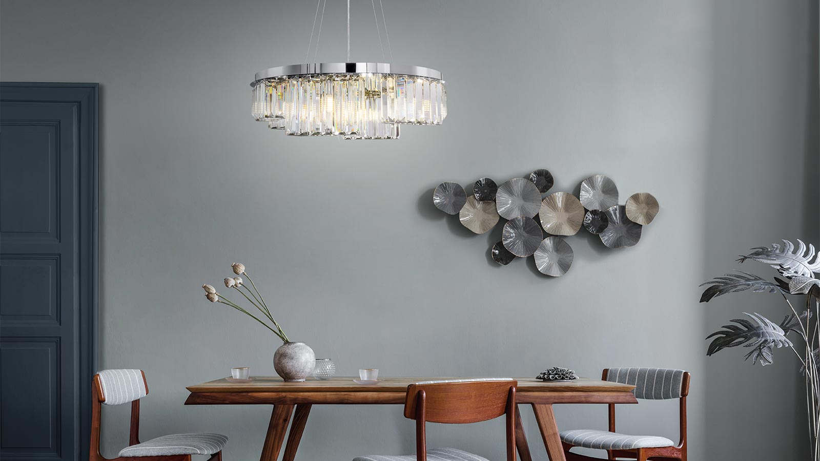 Плафоны выполнены в виде отполированных до блеска стеклянных подвесов различной высоты, образующих стройную колоннаду, объединенную отражателем. Оригинальный дизайн плафонов сочетается с изящным каркасом из хромированного металла. При включении светильника, благодаря необычному дизайну, они дают красивые блики, наполняющие комнату яркими огоньками. Размеры устройства составляют 300 мм х 150 мм, что позволяет легко интегрировать его в любое интерьерное пространство. Модели, входящие в коллекцию Colline MOD083, идеально подойдут для размещения в зоне гостиной, спальни, кабинета или студии, оформленных в стиле хай тек, а также для размещения в зоне барной стойки или острова в столовой, позволяя использовать в тандеме подвесные светильники и настенные источники света.