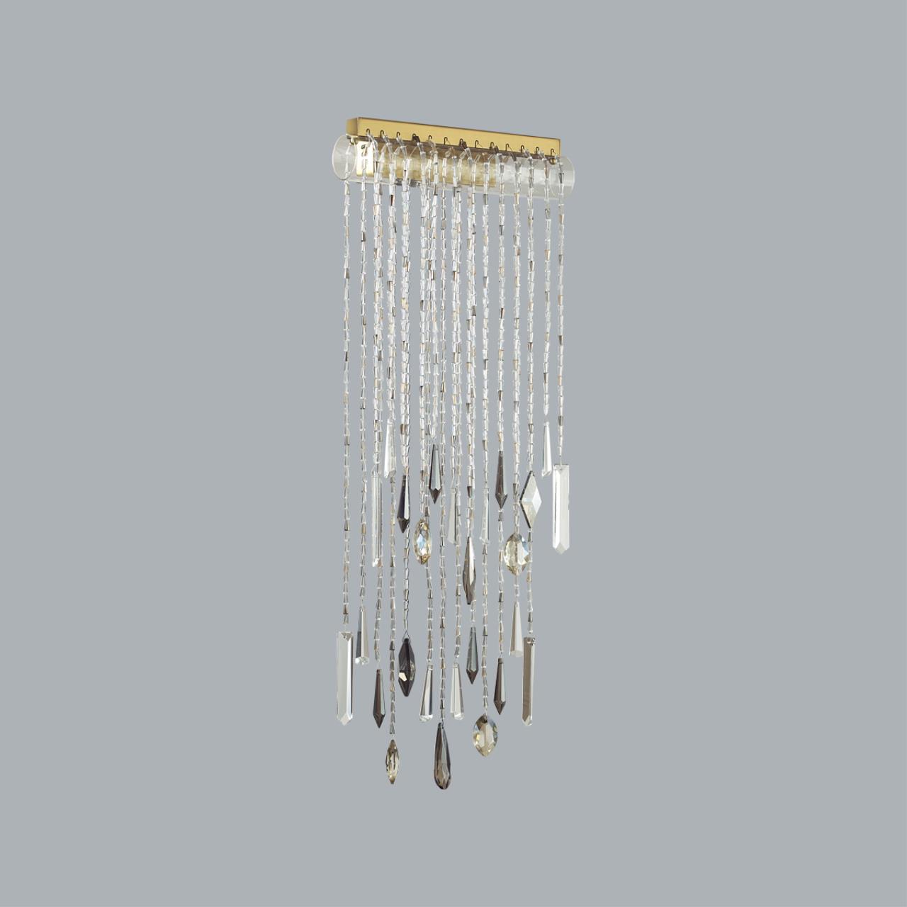 Afina - линия светильников, вдохновленная греческими мотивами. Струящиеся хрустальные нити из прозрачного, дымчатого и коньячного хрусталя создают притягательную игру переливов и отблесков. В моделях LED-источник света с цветовой температурой 3000K. В люстре предусмотрено два варианта высоты на выбор - 765 мм, либо 965 мм, высота изменяется с помощью установки штанги нужной длины, оба варианта штанги поставляются в комплекте с светильником. Плафон, через который перекинуты хрустальные нити - из прозрачного стекла.