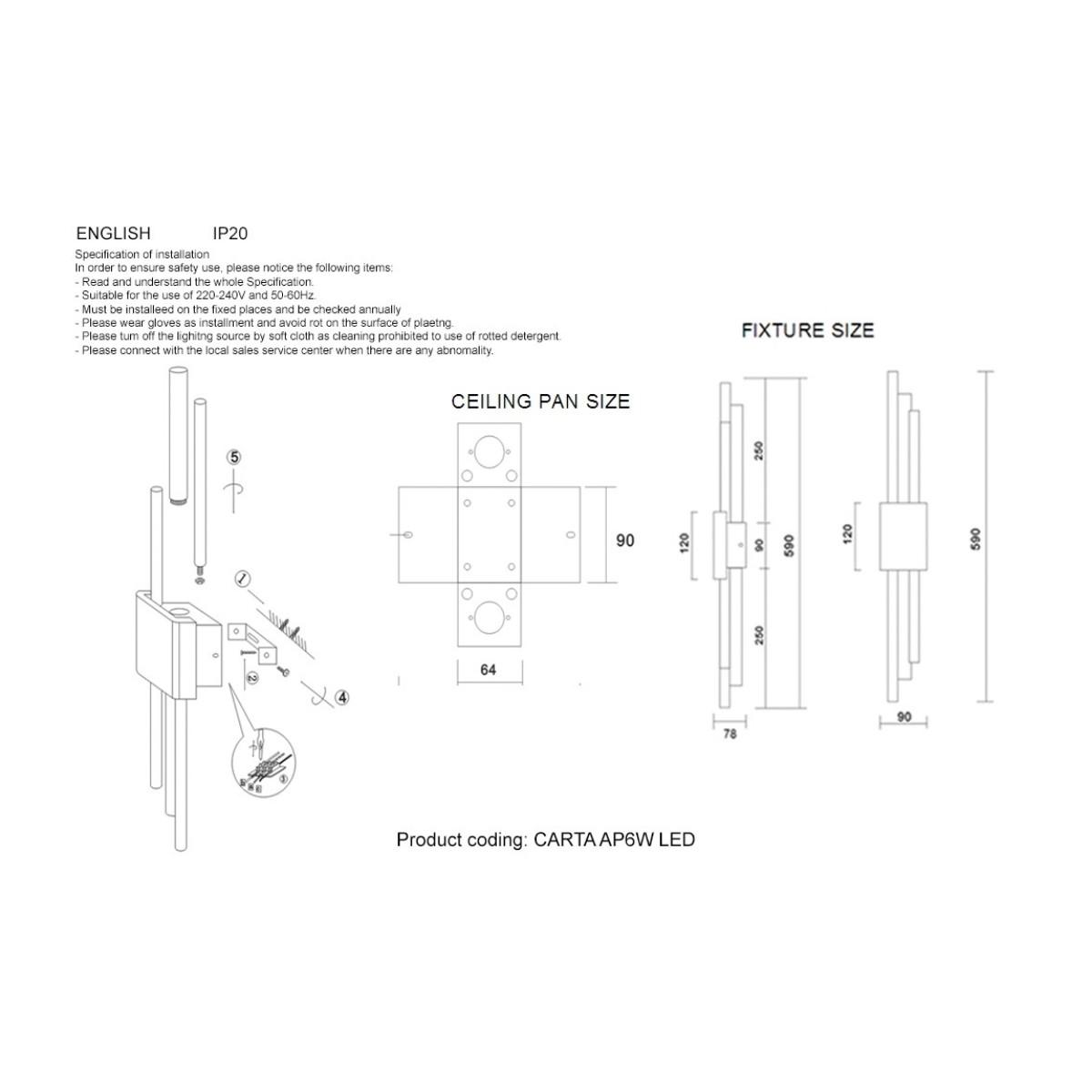 Все характеристики CARTA AP6W LED BLACK/BRASS