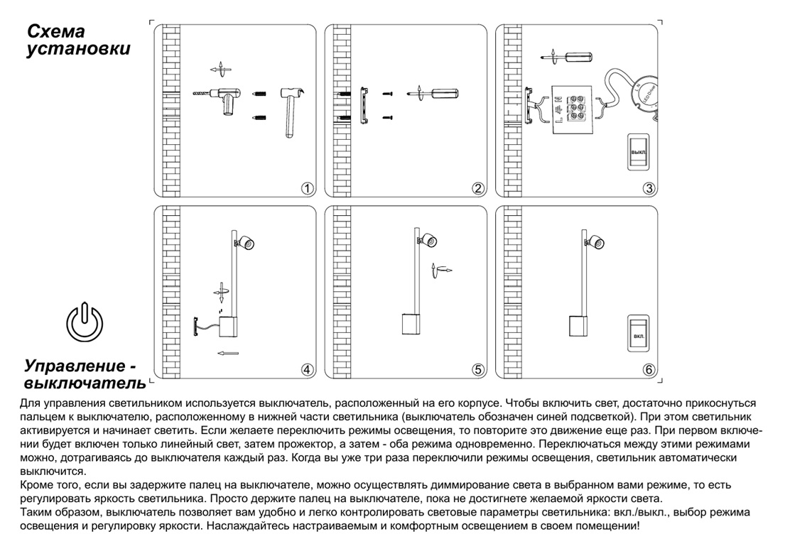 - Технические особенности: Сенсорные, Диммер сенсорный