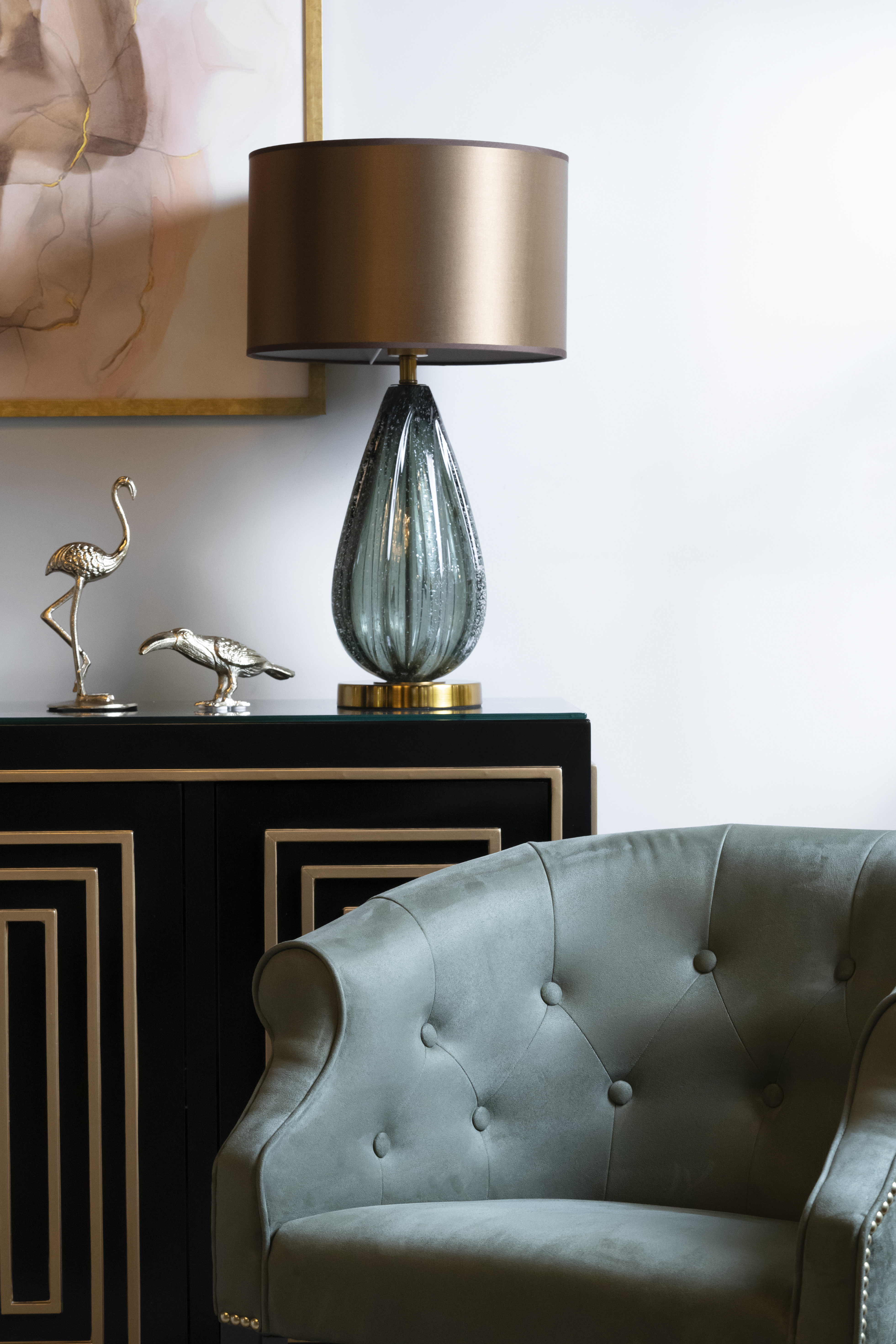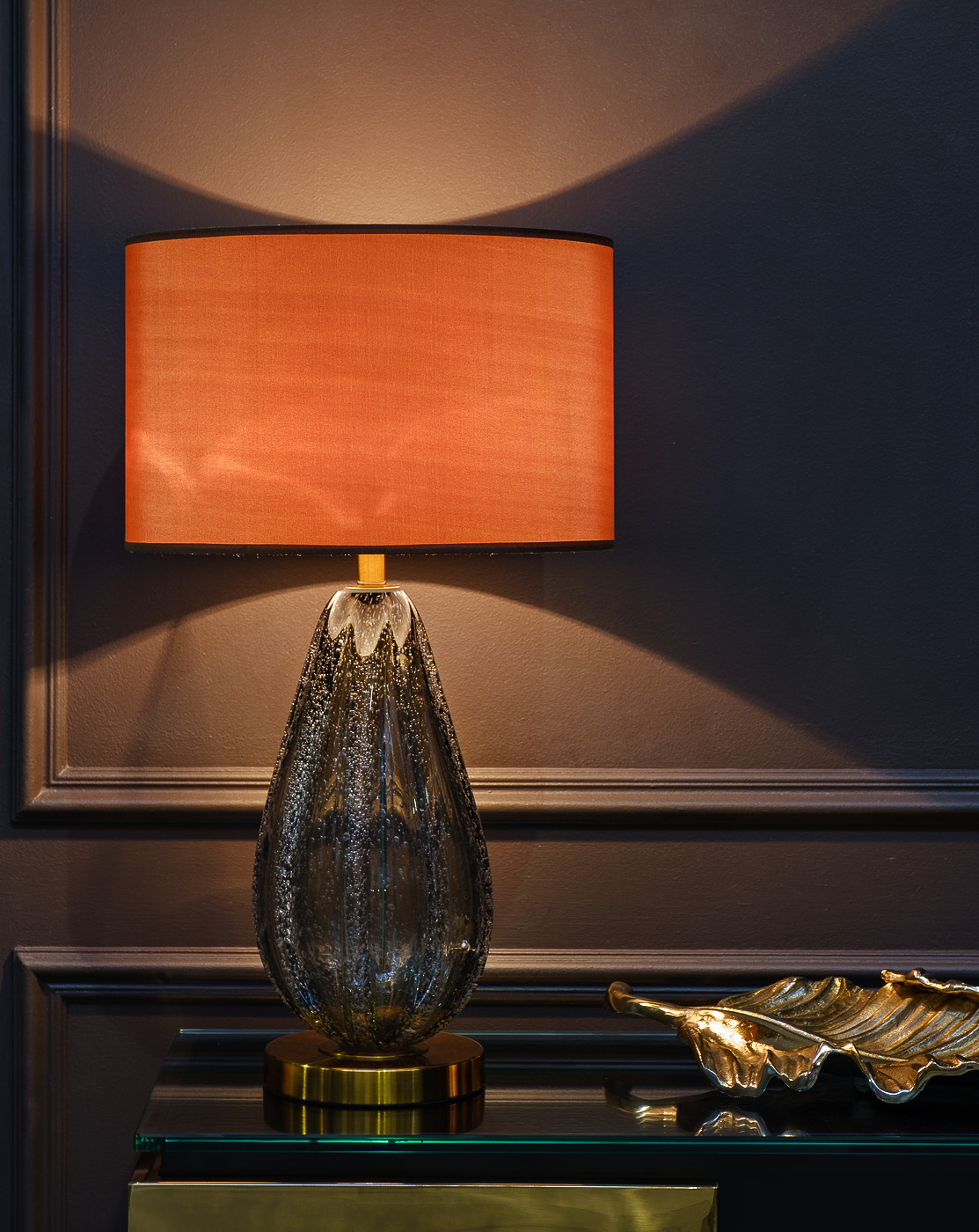 Представленная стеклянная настольная лампа – это гармония традиционной формы и необычного цветового решения. Она отлично справляется с функциями дополнительного источника искусственного света и играет важную роль в декоре жилого пространства. Оригинальная настольная лампа с абажуром эффектно смотрится на прикроватной тумбочке в спальне, она украсит собой гостиную или создаст мягкое освещение в прихожей. Сочетание серо-зеленого стекла и коричневого плафона делает эту модель весьма интересной и необычной. Если вам нужна красивая настольная лампа с индивидуальностью, тогда это отличный вариант.