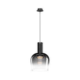 Цветовая гамма: дымчато-серый или насыщенно-янтарный цвет стекла в сочетании с черной или золотой арматурой. В серии есть модели светильников со сменным источником света с цоколем Е27 (каскадная композиция, потолочный и настольные светильники) и LED-источником (одинарные подвесные светильники). Температура свечения LED – 3000 К, угол рассеивания — 120 градусов. Плафоны каскадной композиции плафоны разных размеров и оттенков, установленные на одно основание. Оригинальный декор — актуальный вариант современной классики.