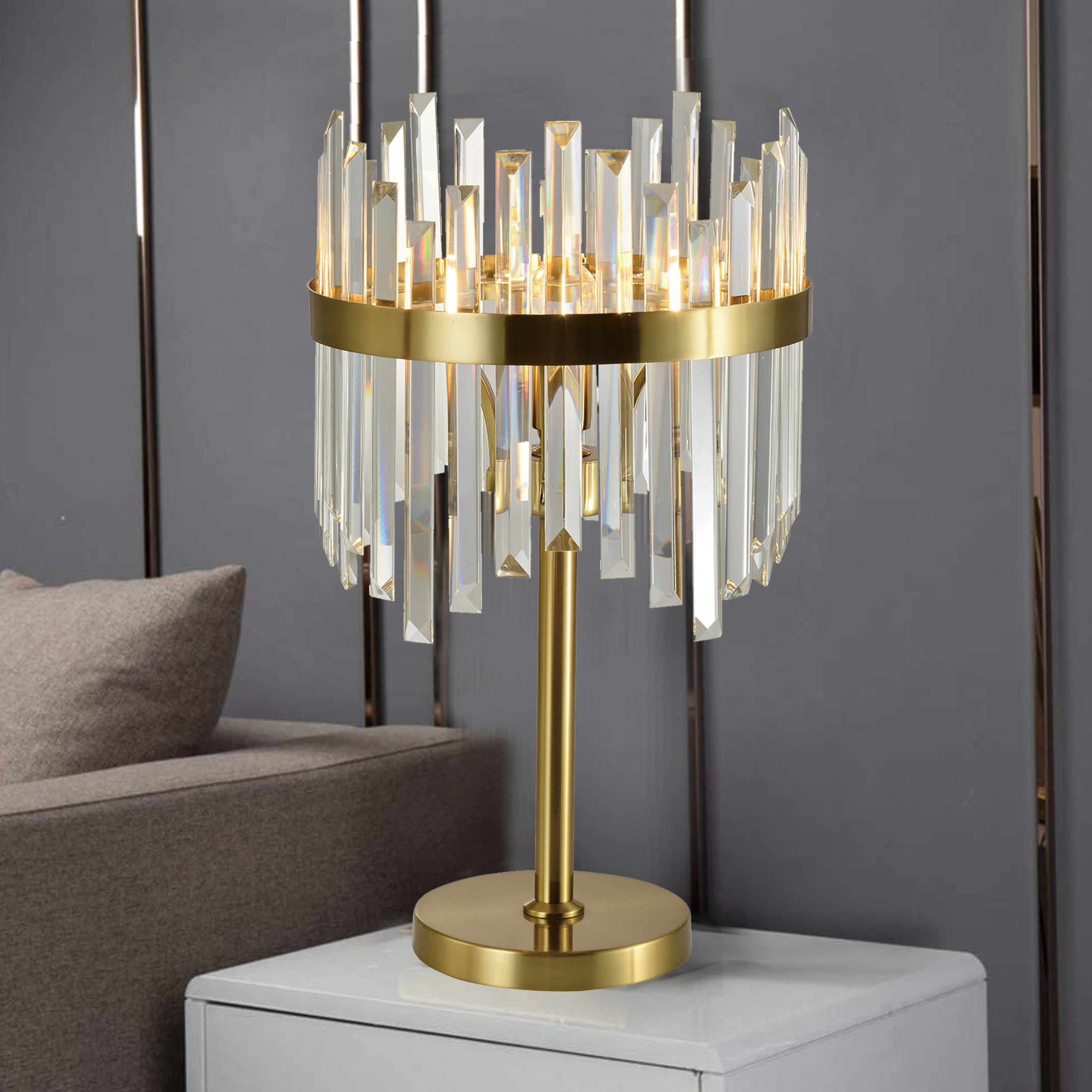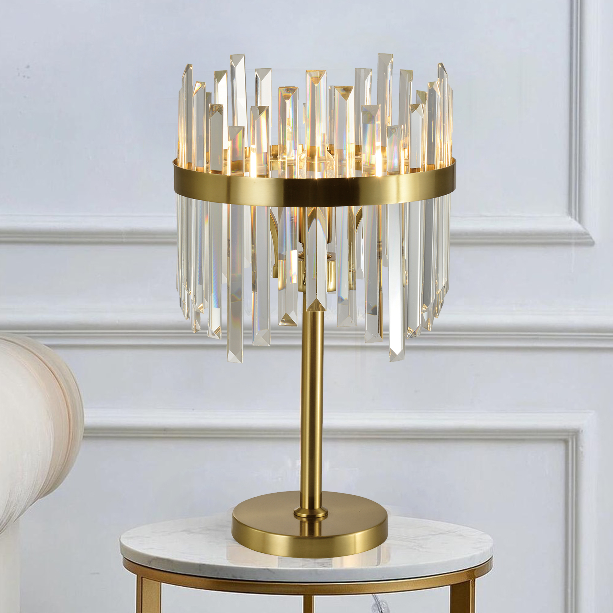 Роскошная настольная лампа станет любимым элементом интерьера в вашем доме. Сочетание стекла и золота создают неповторимый стиль, которым наслаждаешься и восхищаешься. Зеркальные поверхности отражают свет, создавая яркие блики и украшая пространство. В серии также есть подвесной светильник, торшер и люстра для гармоничного завершения образа комнаты, в которой она располагается.