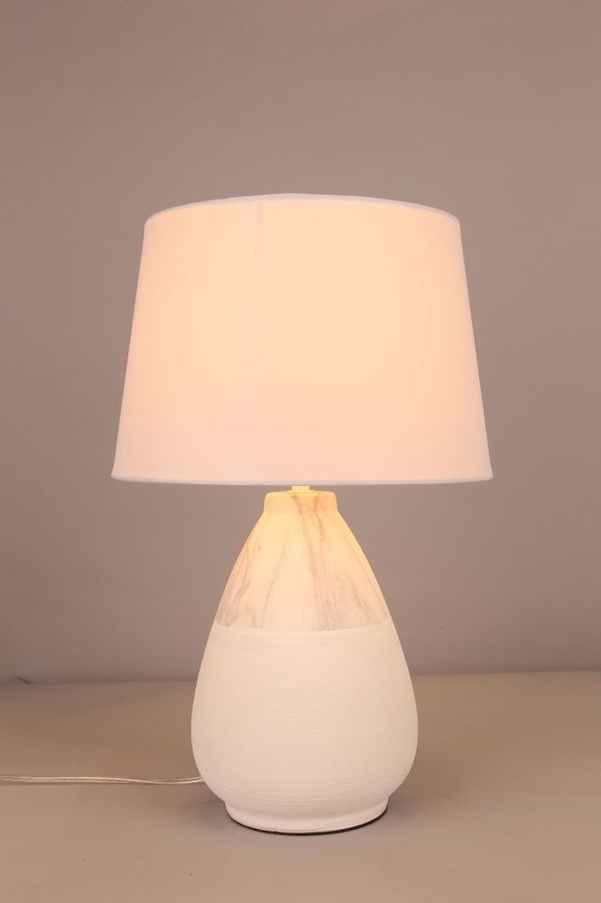 Модель OML-8211 OML-82114-01 Китайского бренда Omnilux из коллекции OML-8211 выполнена в стиле прованс и хорошо подойдет для гостиной площадью освещения до 3.3 м2. Настольная лампа имеет 1 плафон из ткани белого цвета и 1 лампу. Производитель рекомендует использовать лампы накаливания c цоколем E27 до 60 W или светодиодные лампы до 8 W! Основание OML-8211 OML-82114-01 сделано из металла белого цвета. Декоративные
