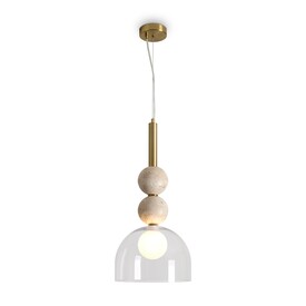 Серия Sunspot использует камень травертин как основной декоративный элемент. Настенные бра в двух вариантах: с матовым белым стеклянным плафоном и со «скользящим» теплым светом. Отличительная черта бра: увеличенный размер плафона и сенсорное включение/выключение без диммирования. Подвесные светильники имеют прозрачные стеклянные плафоны с декоративными шариками из камня травертин. Sunspot включают три модели подвесов разных размеров и форм стеклянной окантовки на плафон. Арматура — металл латунного и черного цвета Источники света LED 3000K и цоколь G9. Настольная лампа с touch переключателем . Серия создает комплексное зональное и акцентное освещение, подходящее для создания уютной атмосферы. Данную модель FR5482TL-L7BG с быстрой доставкой спешите купить в магазине 220svet.ru