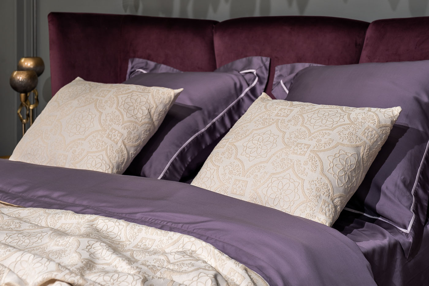 Наволочка декоративная «Тиара» изготовлена из экологичного хлопка в сочетании с практичным и долговечным полиэстером. Ткань легко чистится и стирается в домашних условиях, быстро сохнет. Добавление полиэфирного волокна увеличивает срок службы изделия и его устойчивость к выгоранию. Жаккардовый рисунок в классическом стиле будет актуален во все времена, а пастельные оттенки освежат и украсят дизайн вашего дома. Несколько таких подушек, дополненных покрывалом «Тиара», добавят романтических ноток в атмосферу спальни. УХОД: Ручная или машинная стирка при температуре не выше 40 градусов. Гладить при низкой температуре до 110 градусов. Отбеливание запрещено. Барабанная сушка и отжим в стиральной машине при низкой температуре. Сухая химчистка разрешена.