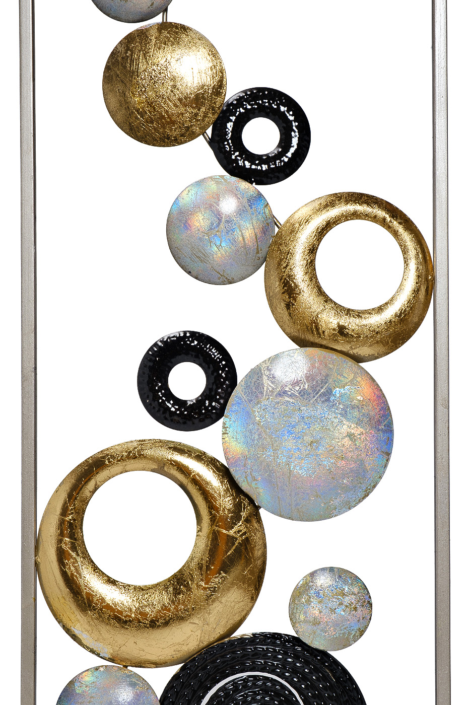 Абстрактное металлическое панно – изящество и стиль в каждой детали. Его уникальный дизайн, сочетающий в себе элегантность и современность, добавит в ваш дом нотку роскоши и индивидуальности. Изящная композиция из металлических элементов в виде кругов и к...