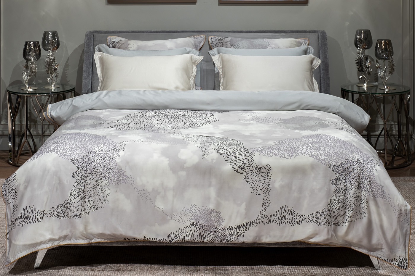 Купить "Пододеяльник Нувола принт тенсель серый 145*210 Garda Decor 144HF-10302"