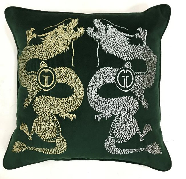 Декоративная подушка с вышивкой – то, что добавит интерьеру индивидуальности, стиля и яркости. С таким красивым текстильным декором мягкая мебель никогда не будет выглядеть скучно. Подушка на диван выполнена из материала с тактильно приятной фактурой, высокой устойчивостью к износу и деформациям. Вышивка в виде символа этого года – драконов, выполнена с эффектом золотых и серебряных нитей, что делает декор еще более изысканным и визуально дорогим.