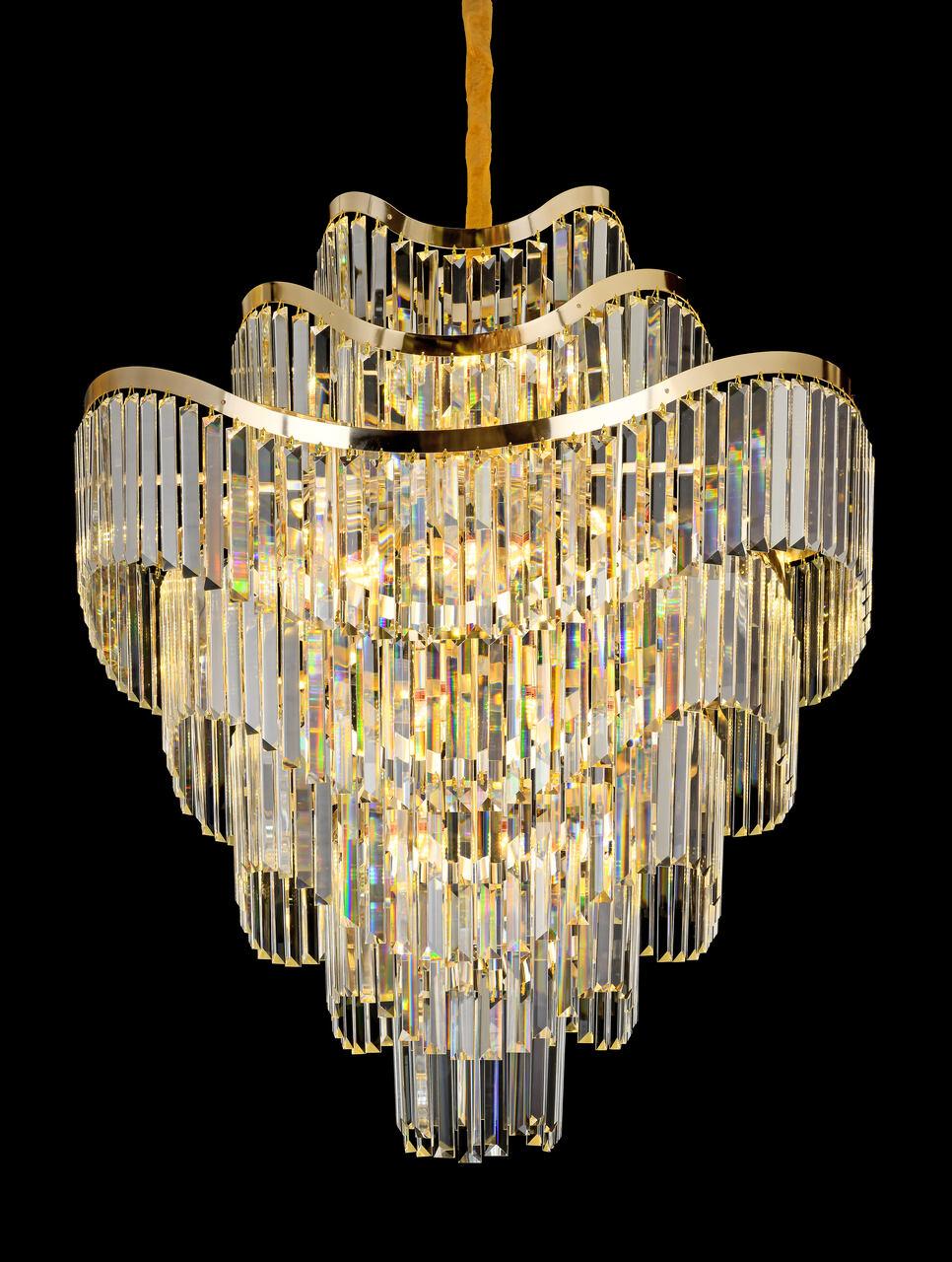 Если вы хотите купить подвесную люстру с доставкой и добавить нотку элегантности в ваш интерьер, наша модель F3624-03 — идеальный выбор. Эта люстра в неоклассическом стиле украсит любое пространство, будь то гостиная, спальня или столовая. Она изысканно сверкает благодаря хрусталю и золотистой арматуре, создавая атмосферу роскоши и уюта. Модель оснащена 34 лампами с цоколем Е14, которые обеспечивают яркое и экономичное освещение, идеально подходя для площади от 30 до 45 квадратных метров. Диаметр люстры составляет 1000 мм, максимальная высота 1850 мм, при этом длину подвеса можно отрегулирвать, что позволяет выбрать оптимальный вариант под ваши потолки.